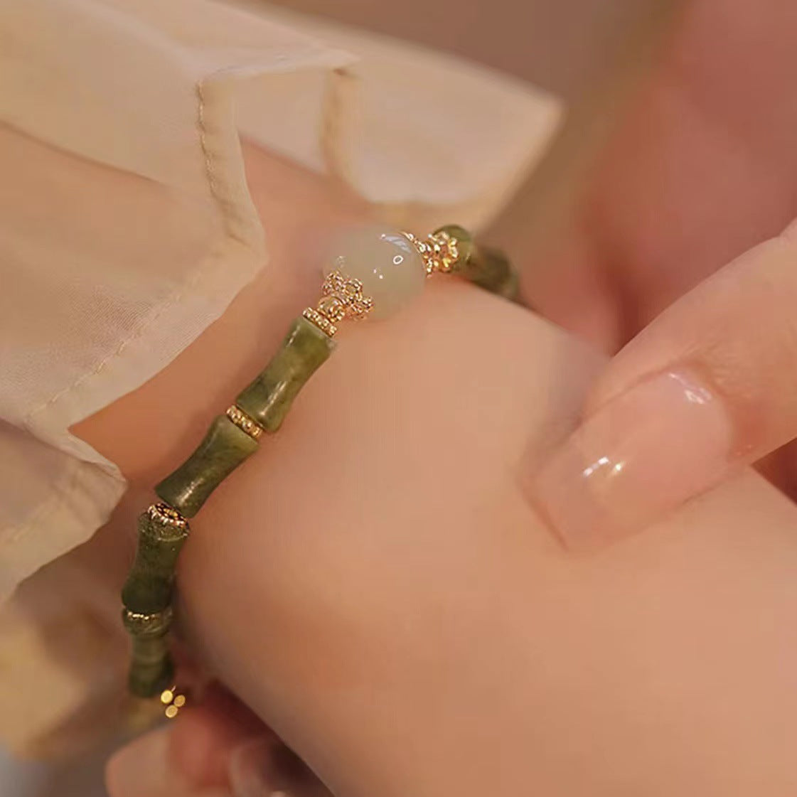 Crafted with 108 white jade beads and a symbolic lotus charm, this versatile mala can be worn as a bracelet or necklace—blending elegant design with traditional craftsmanship.
