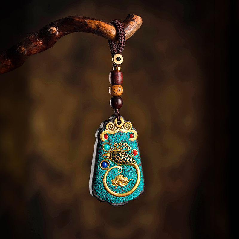 • The Golden Phoenix: Rising from a vibrant turquoise sky, the Golden Phoenix (Fenghuang) is depicted in exquisite detail. In Eastern culture, the Phoenix is the "King of Birds," representing grace, virtue, and the Empress. This is a powerful symbol of rebirth, renewal, and high fortune. It is the perfect charm for anyone starting a new chapter in life, symbolizing the resilience to rise above challenges and the attraction of auspicious opportunities.