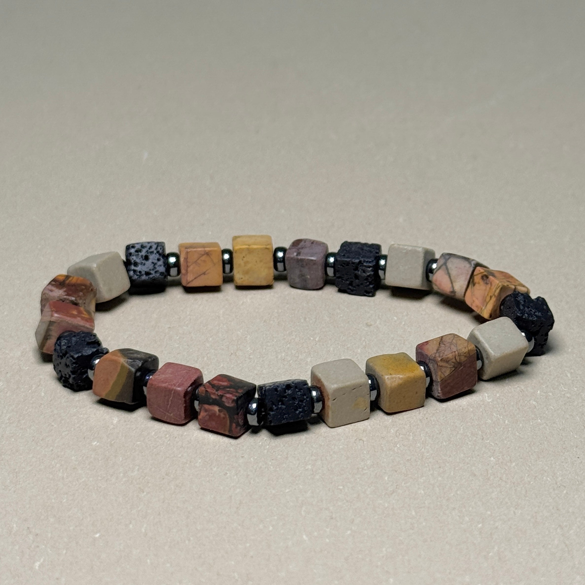 Shield your spirit — embrace strength and balance with the Natural Lava Stone Cube Bracelet.