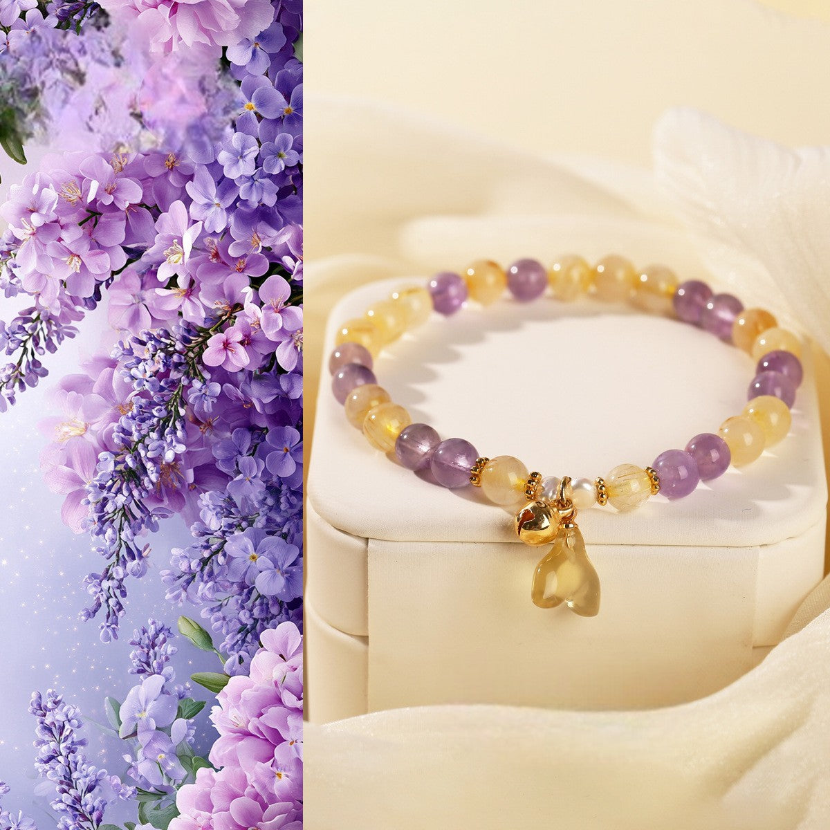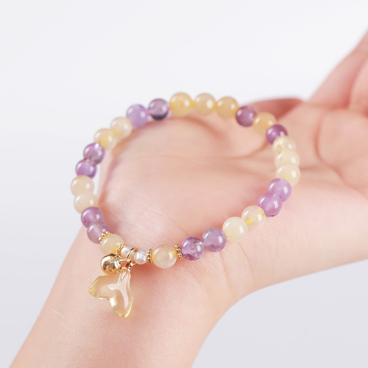 Amethyst Rutilated Quartz Fishtail Pendant Balance Bracelet Highlights
