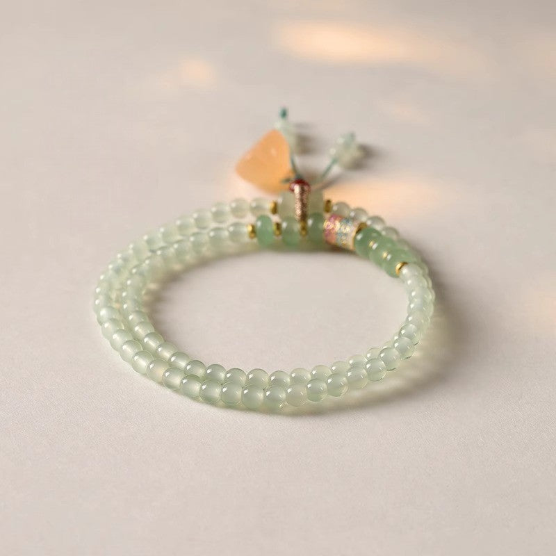 Green jade has long been treasured as a stone of peace, wisdom, and good fortune. Its gentle green hue embodies harmony and renewal, believed to attract prosperity while promoting emotional healing and inner calm. The double-wrap design enhances its symbolism — representing balance between body and mind, yin and yang, and the flow of positive energy.
