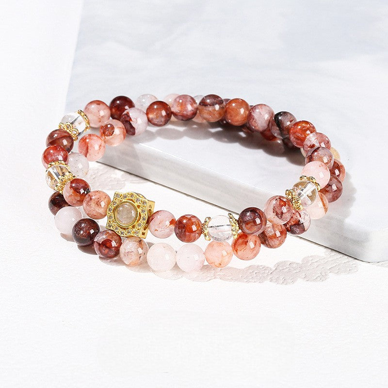 Radiate vitality, joy, and good fortune with the Double Wrap Red Gum Flower Crystal Luck Bracelet — a talisman of growth, strength, and blossoming energy. Inspired by the red gum flower, a symbol of courage and renewal, this bracelet embodies the power to flourish through challenges and attract prosperity with positivity and grace.