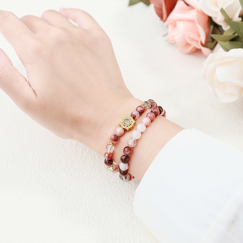 Double Wrap Red Gum Flower Crystal Luck Bracelet