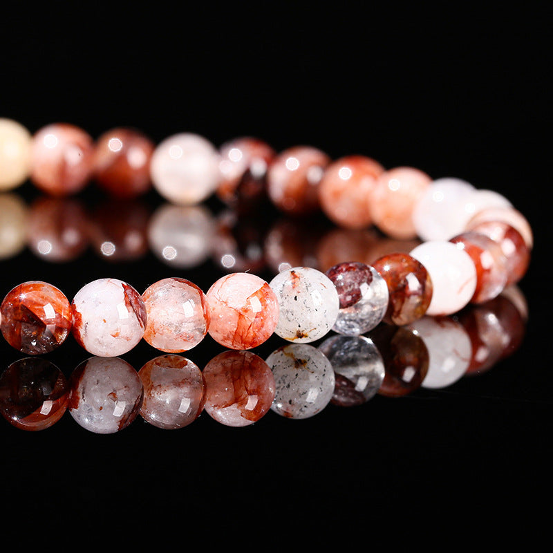 Each crystal bead sparkles with purifying energy, known to cleanse negativity, enhance emotional clarity, and amplify luck. The vibrant red gum flower charm signifies vitality and perseverance — reminding you to stay grounded and bloom with confidence.