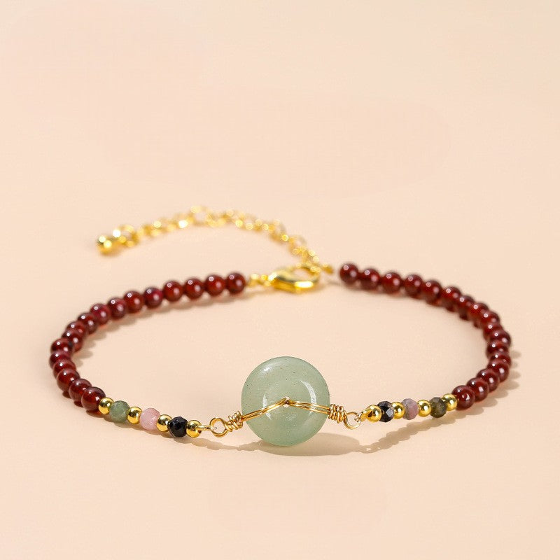 Garnet Green Jade Peace Buckle Protection Bracelet