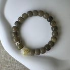 These rounded, muted green-gray beads evoke stillness and balance, making this bracelet a soothing complement to busy modern life. -