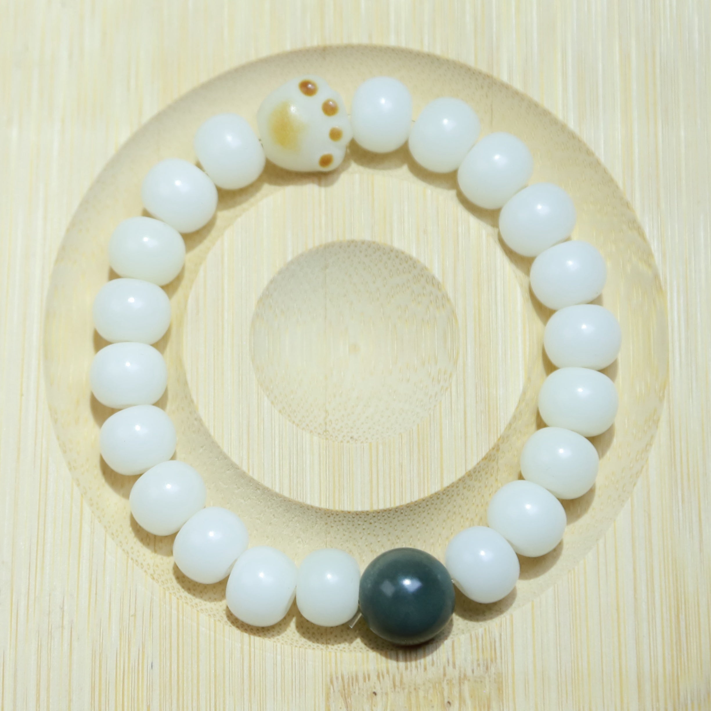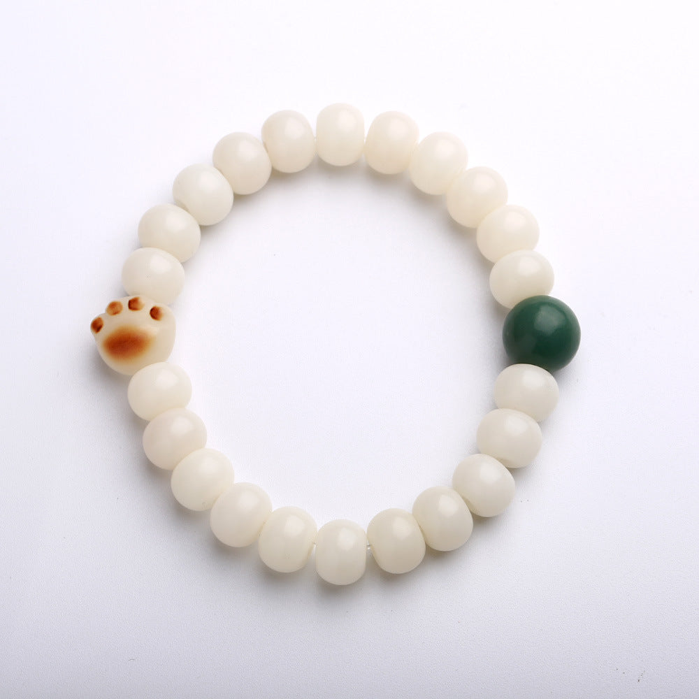 For those who seek daily calm, heartfelt protection, and a touch of playful charm, the Lucky Paw Bodhi Bead Protection Bracelet blends traditional intention with modern warmth. The creamy white bodhi beads symbolize mindfulness and clarity, while the adorable paw charm adds a hint of whimsy and connection to compassion. A single deep green bead acts as a grounding focal point—representing renewal and emotional resilience.