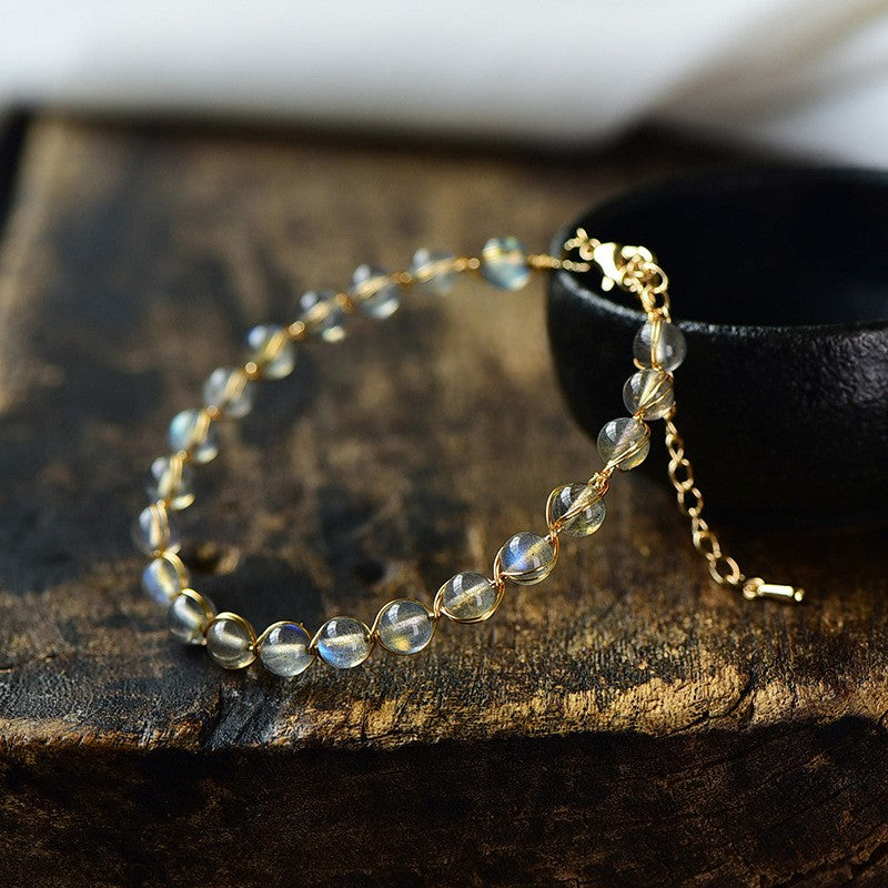 Each natural moonstone bead is carefully selected to radiate subtle beauty and calming energy. This bracelet promotes emotional stability, intuition, and feminine strength, making it a perfect companion for moments of reflection, meditation, or everyday wear.