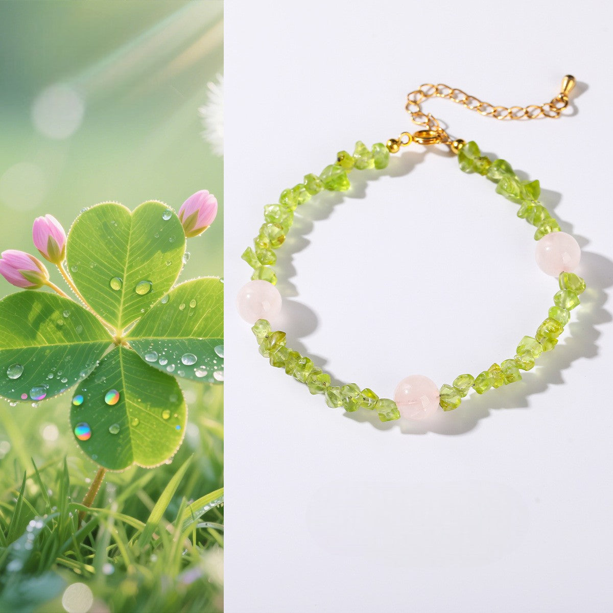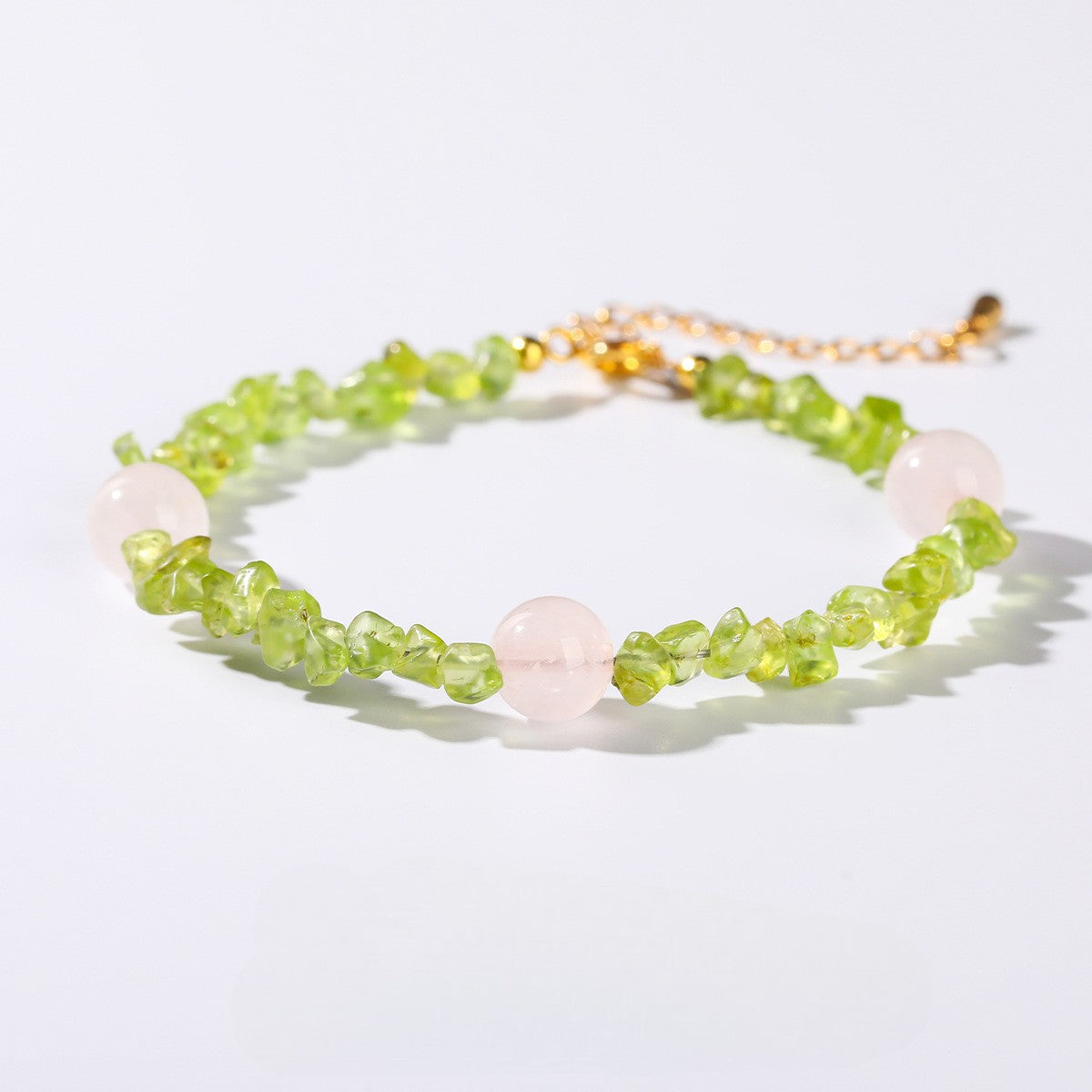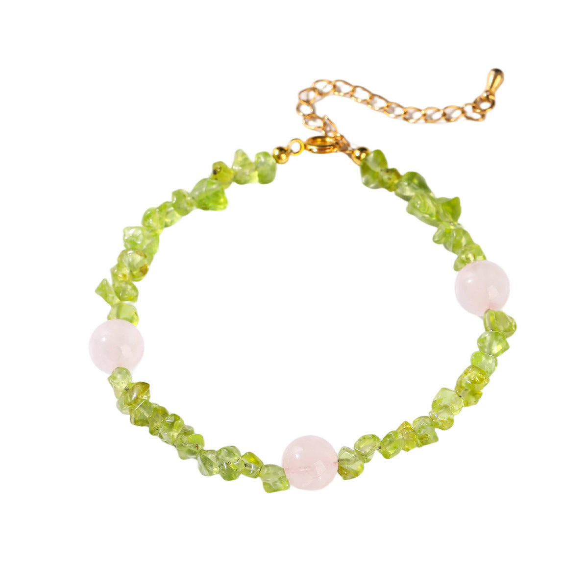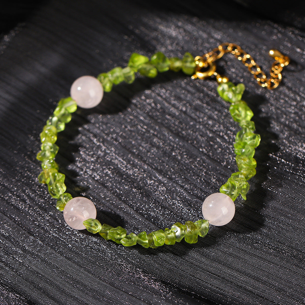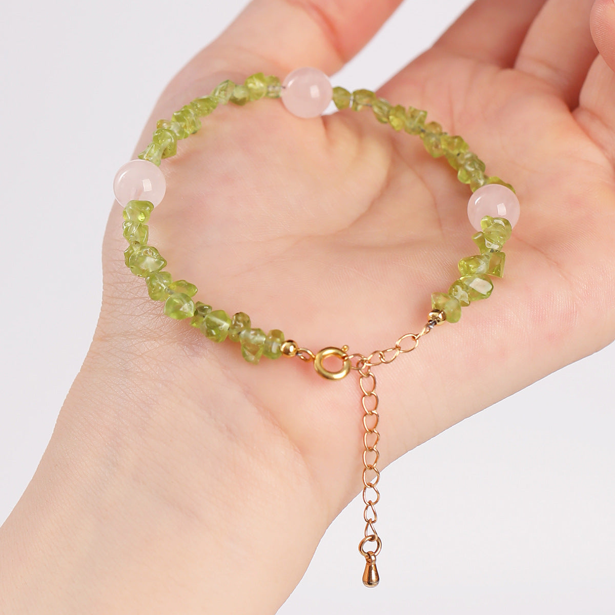 Natural Peridot Gravel Rose Quartz Balance Bracelet Highlights