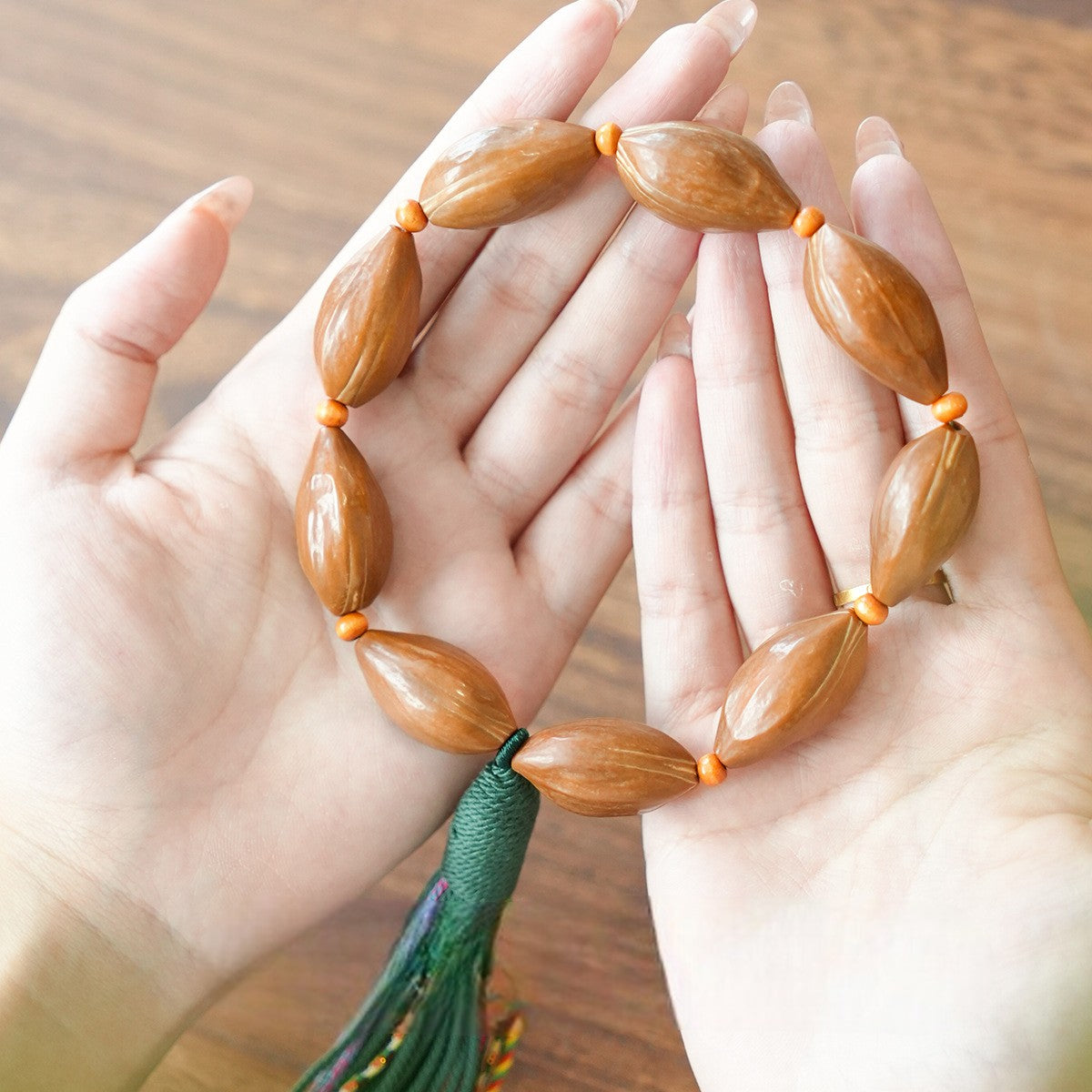 Olive Nut Rosary Harmony Bracelet Highlights