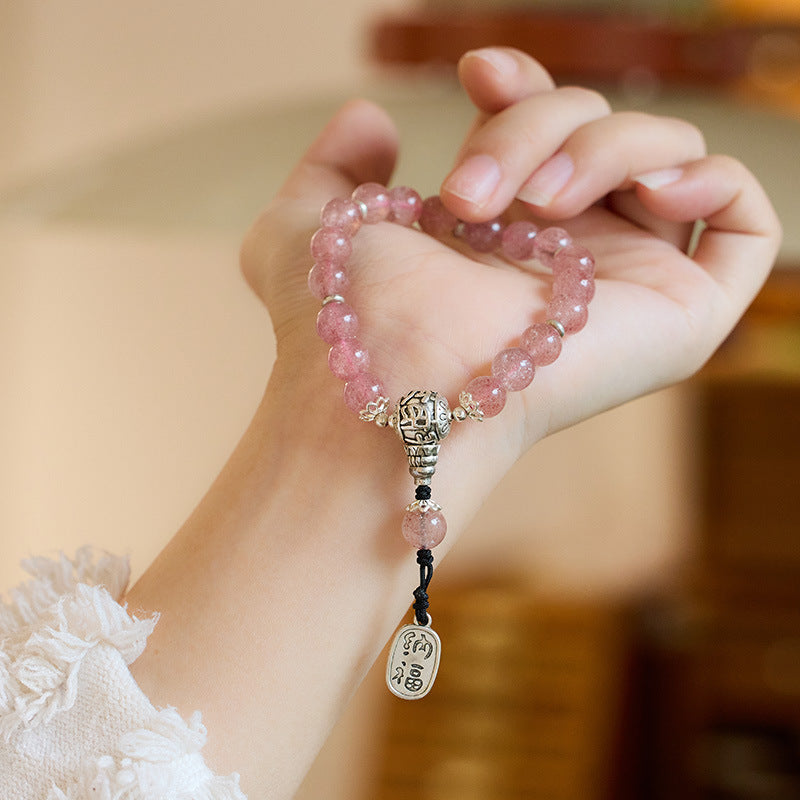 Om Mani Padme Hum Strawberry Quartz Love Bracelet
