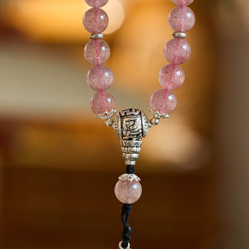 Om Mani Padme Hum Strawberry Quartz Love Bracelet Highlights