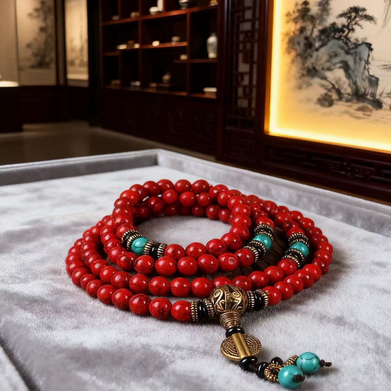 Each bead carries deep spiritual meaning — symbolizing wisdom, strength, and enlightenment. In Buddhist culture, prayer beads are used to cultivate mindfulness and positive intention. The red turquoise amplifies vitality, courage, and emotional balance, creating a harmonious flow of energy that shields the wearer from harm while promoting inner peace and focus.