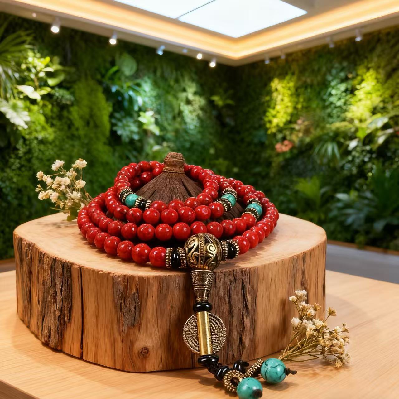 Tibetan Red Turquoise Buddhist 108 Mala Beads Protection Bracelet