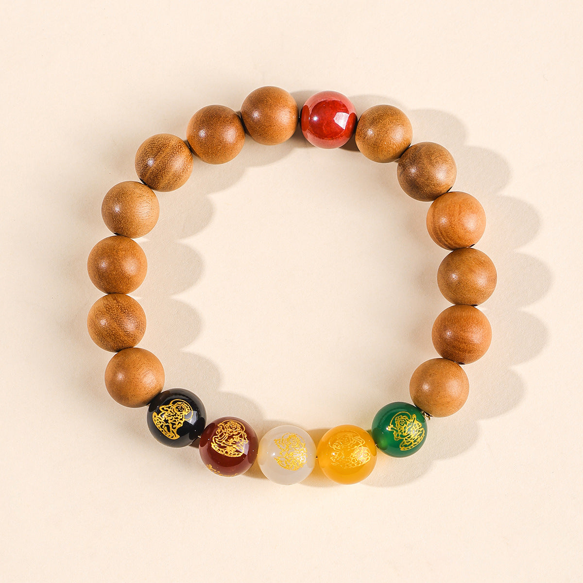 Peachwood Five God of Wealth Harmony Bracelet Highlights