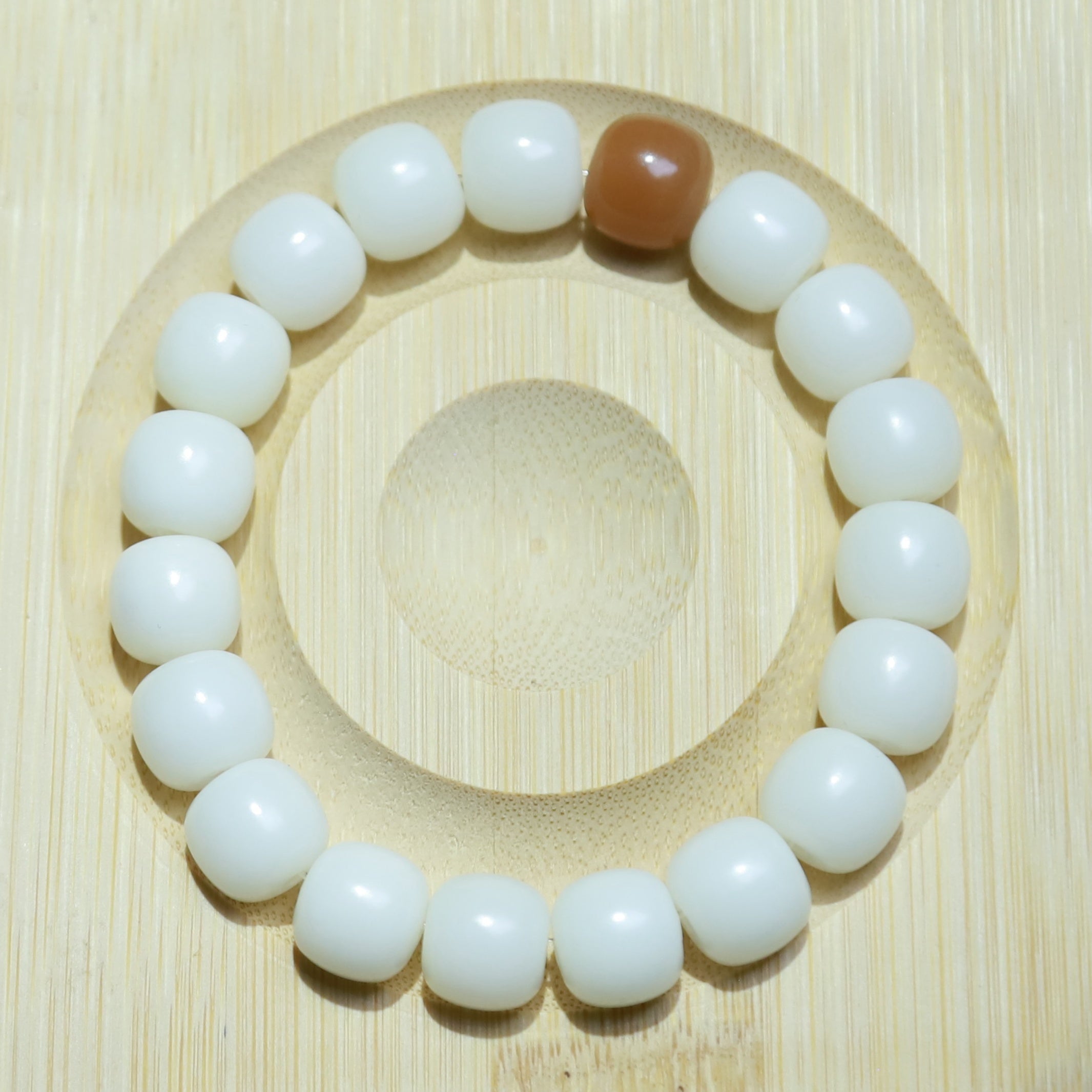 The White Bodhi Harmony Bracelet is a quiet expression of balance and clarity. Crafted with smooth, ivory-toned bodhi seed beads and accented by a single green/orange bead, this piece invites a sense of harmony—both within and around you.