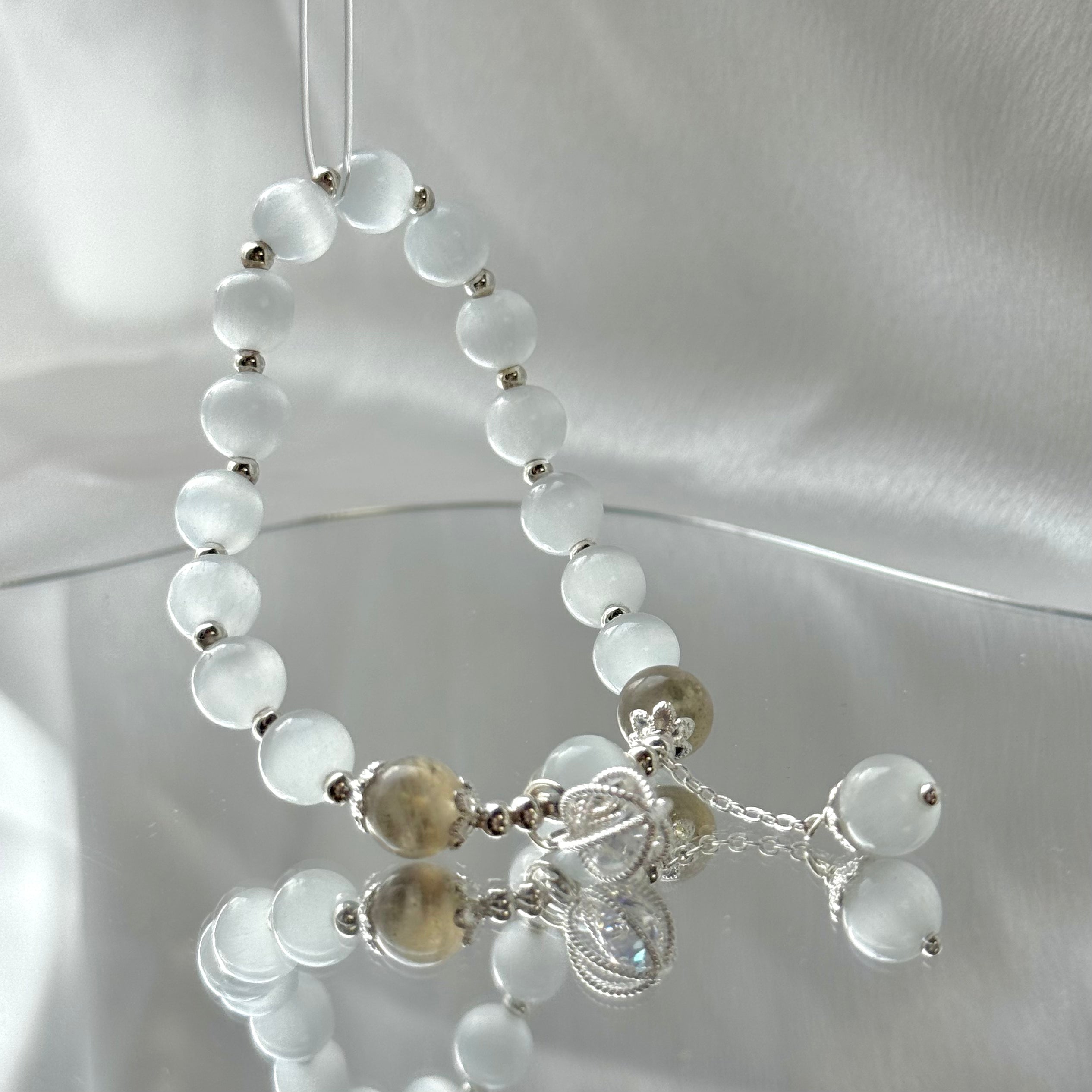 If you're drawn to soft light, subtle elegance, and the quiet power of intuition, this bracelet is designed for you. The delicate glow of cat’s eye meets the soothing energy of moonstone—enhanced by a lucky charm bead—to gently guide your heart, mind, and spirit.