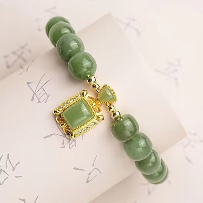Infused with timeless elegance and symbolic meaning, the Green Jade Geometric Pendant Bracelet blends natural beauty with cultural significance.