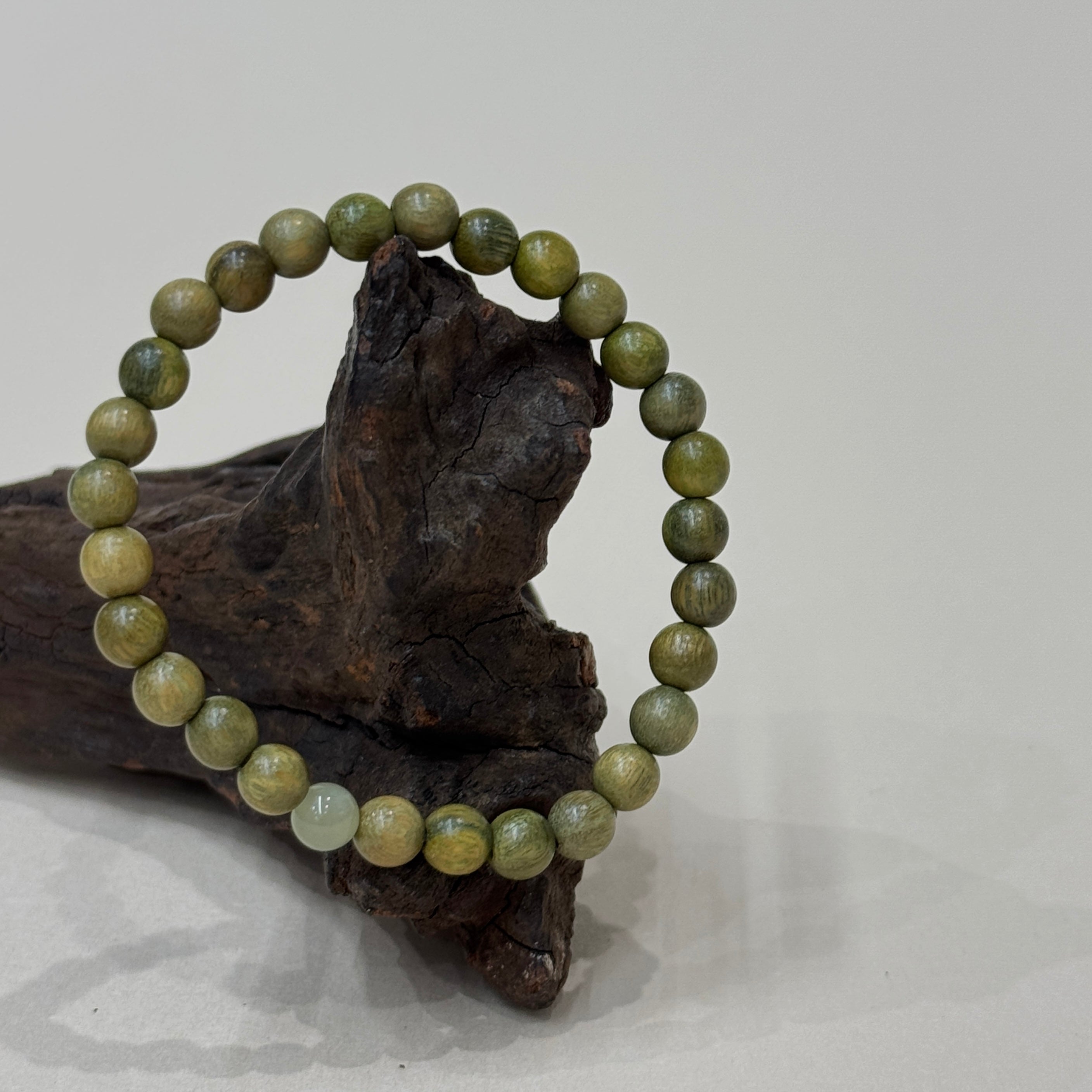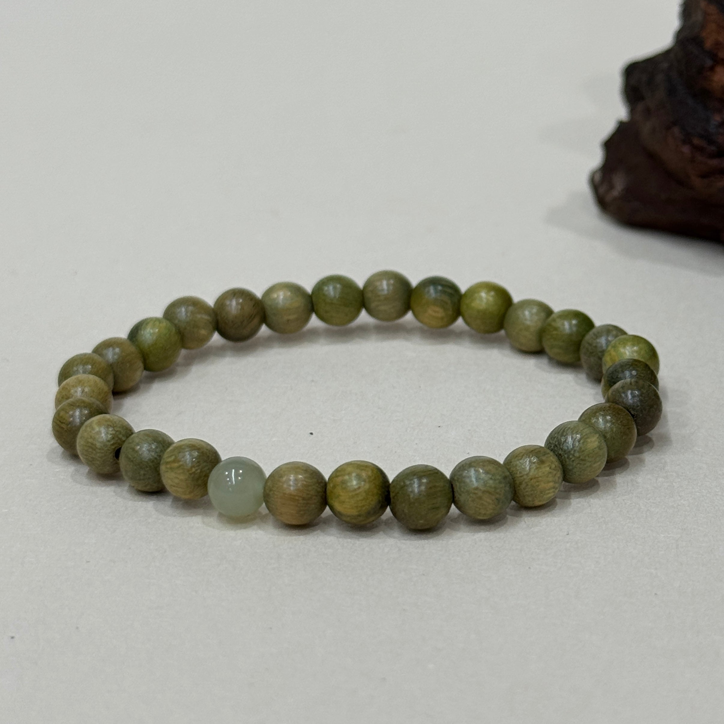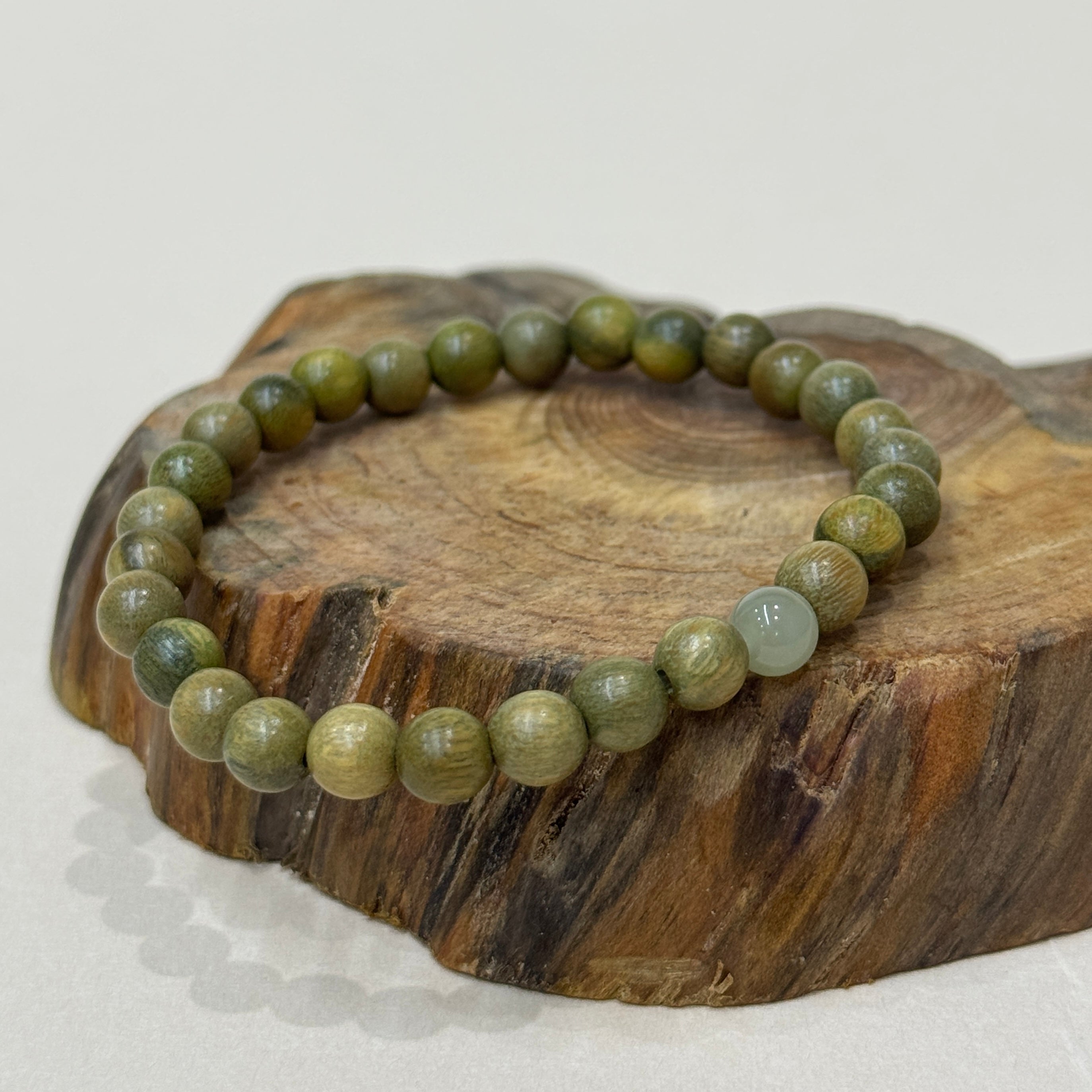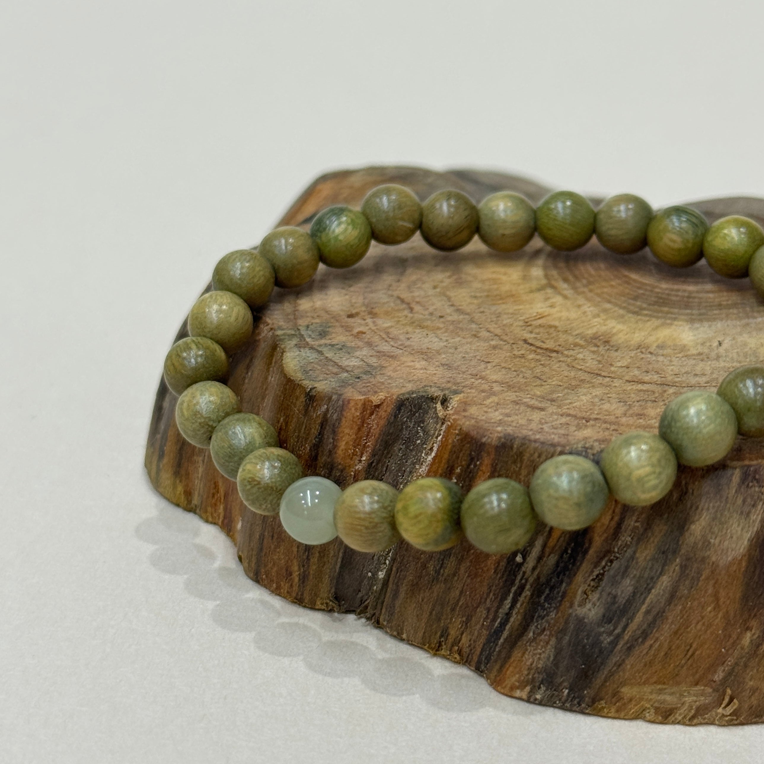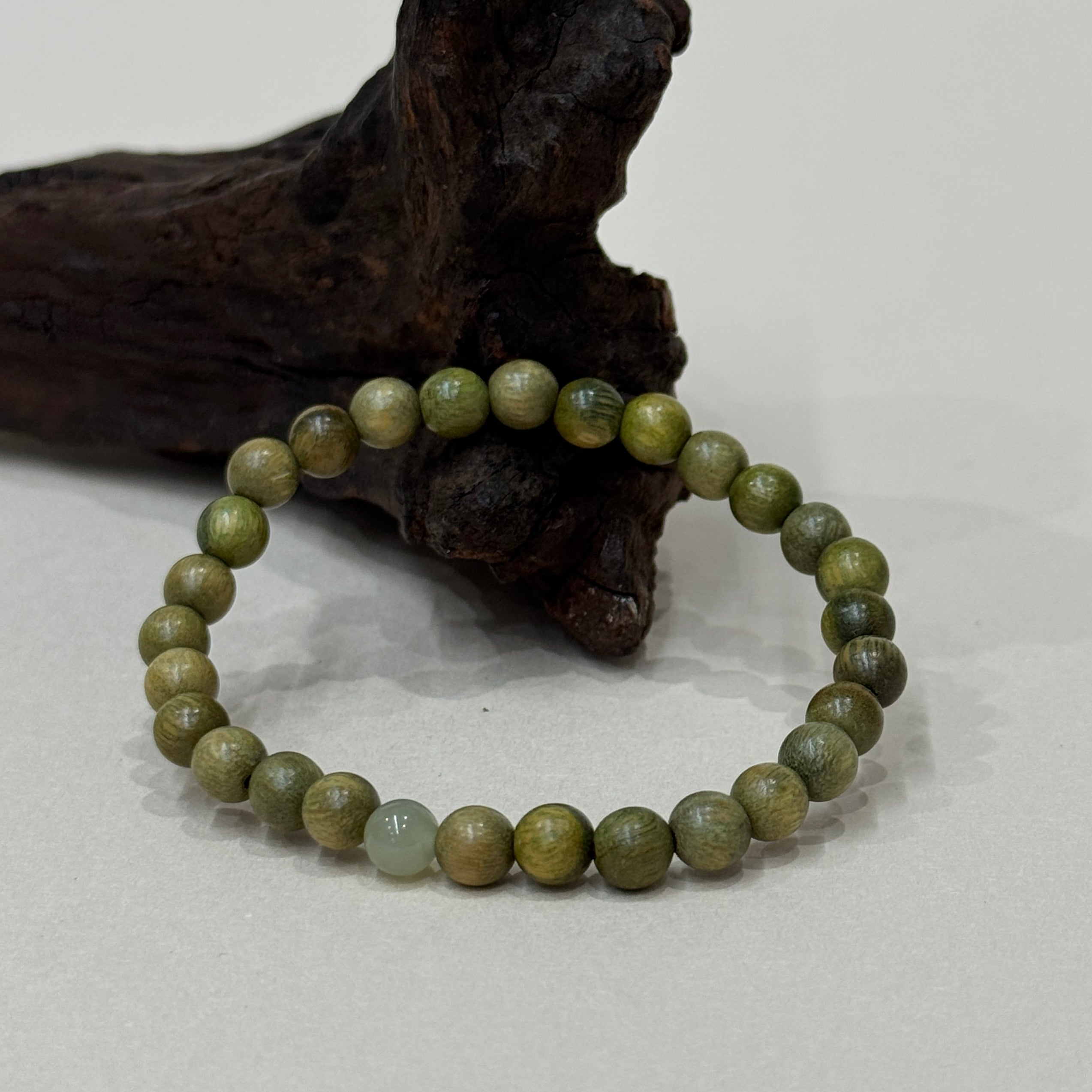A harmonious blend of natural green sandalwood and a single jade bead, crafted for grounding, balance, and inner peace.