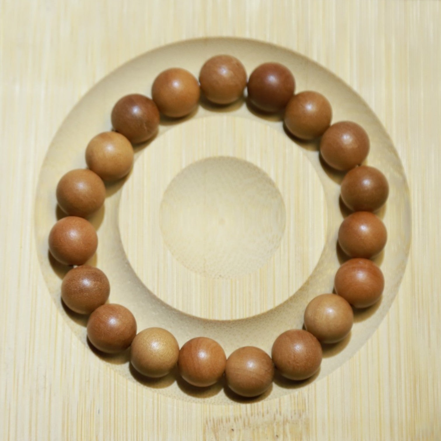 Made from naturally aromatic peach wood and hand-polished to a smooth, warm finish, this bracelet is a reminder of balance, protection, and inner harmony.