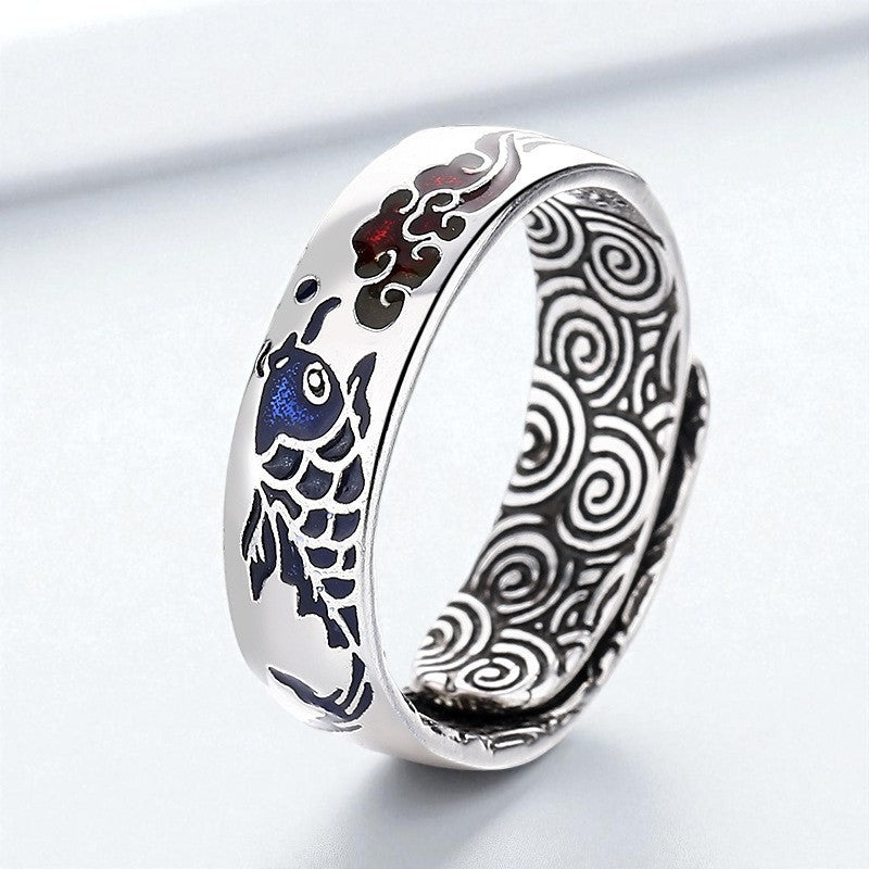 Introducing the Koi Fish & Auspicious Cloud Adjustable Ring — a timeless talisman of prosperity, protection, and positive energy in traditional culture! The koi fish symbolizes perseverance, wealth, and good fortune, while the auspicious cloud design represents harmony and blessings flowing into your life. Crafted with precision and elegance, this adjustable ring is a meaningful charm to attract abundance, balance your energy, and safeguard your spirit every day.