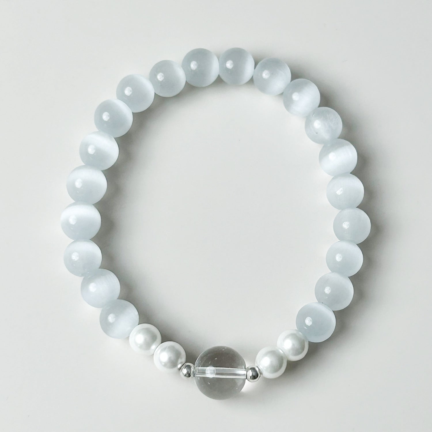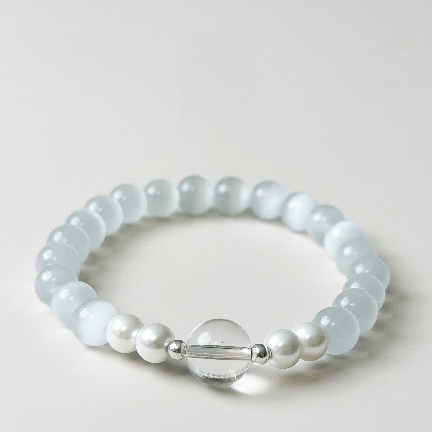Introducing the White Cat's Eye Pearl Balance Bracelet — a timeless talisman of clarity, balance, and positive energy in traditional culture! White Cat’s Eye, revered for its protective qualities, is believed to enhance intuition, promote calmness, and shield against negative influences. Paired with pearls, symbols of purity, wisdom, and harmony, this bracelet becomes a meaningful charm to harmonize your energy, attract positivity, and support emotional well-being. Wear it daily as a source of inner balance, protection, and serenity.