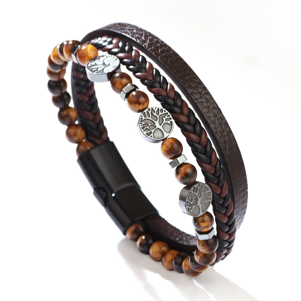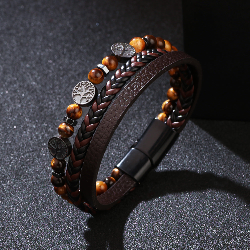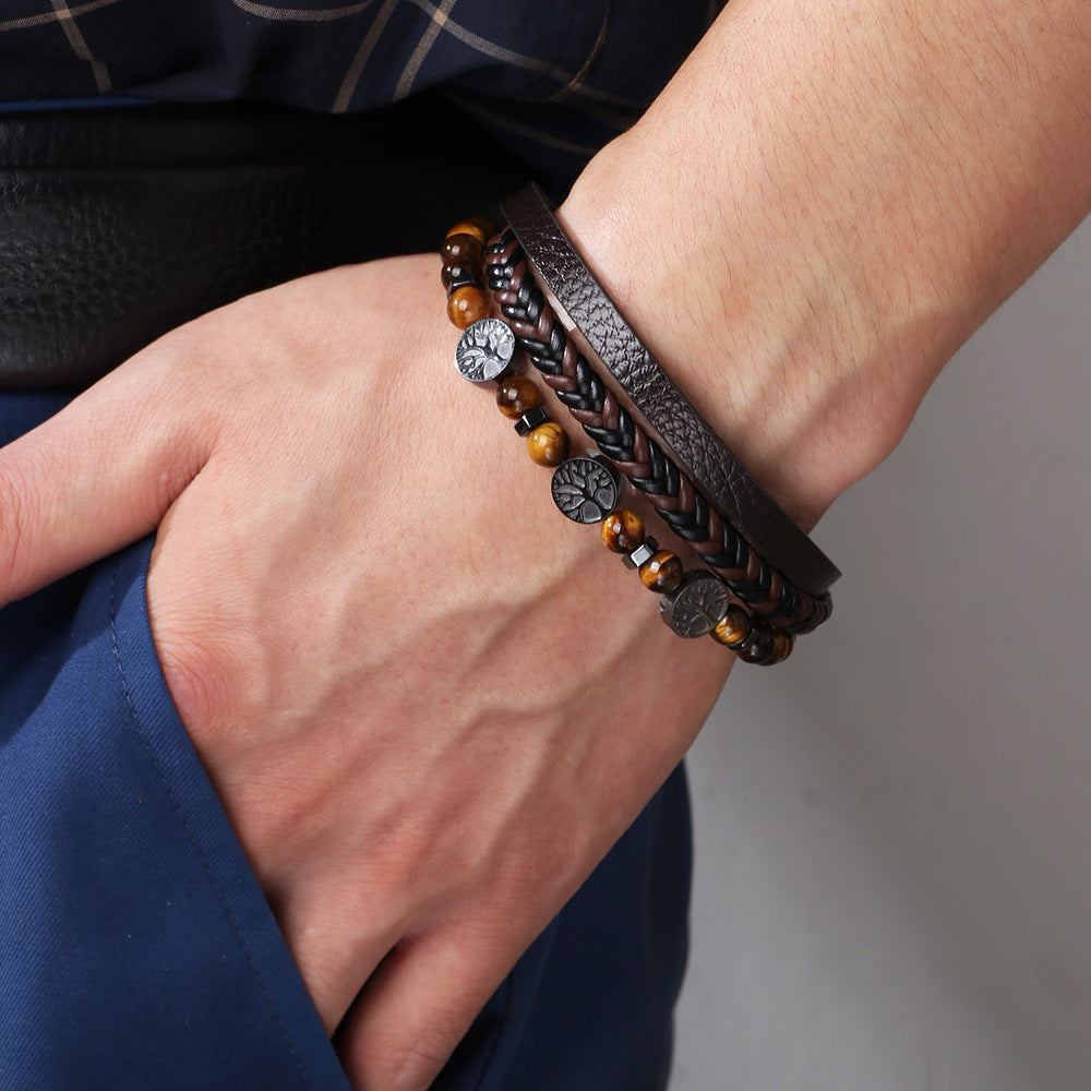 Each element carries meaningful symbolism: tiger eye empowers confidence and financial decision-making, while leather embodies strength, grounding, and perseverance. Designed for everyday wear, this bracelet is more than just an accessory—it is a talisman of abundance, stability, and determination.