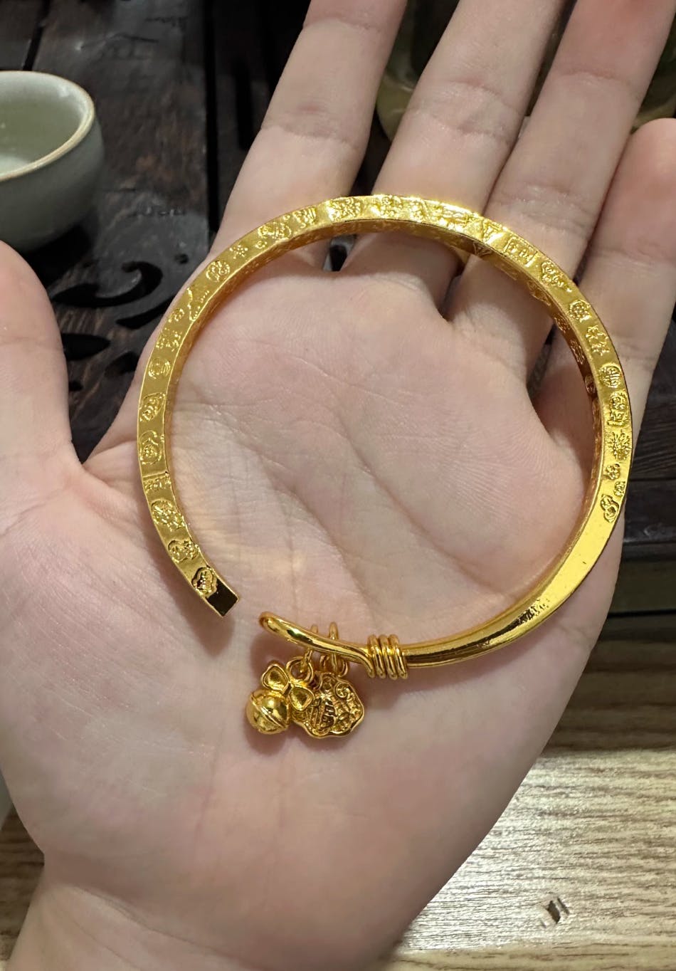 Invite fortune, harmony, and blessings into your life with the Alloy Peace Lock Pendant Wealth Open Bangle.