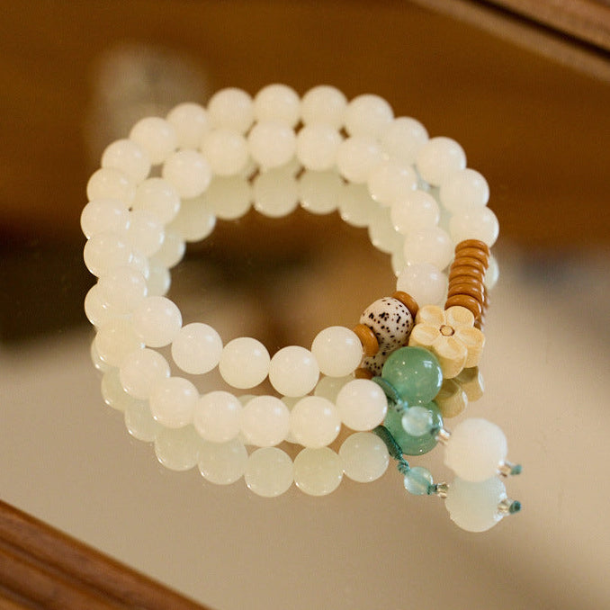 Hand-strung with natural Bodhi seeds and adorned with a delicate lotus pendant, this versatile piece wraps twice around your wrist, blending traditional symbolism with timeless style. Perfect for daily wear or spiritual practice, it’s more than an accessory—it’s a meaningful reminder to stay present and at peace.
