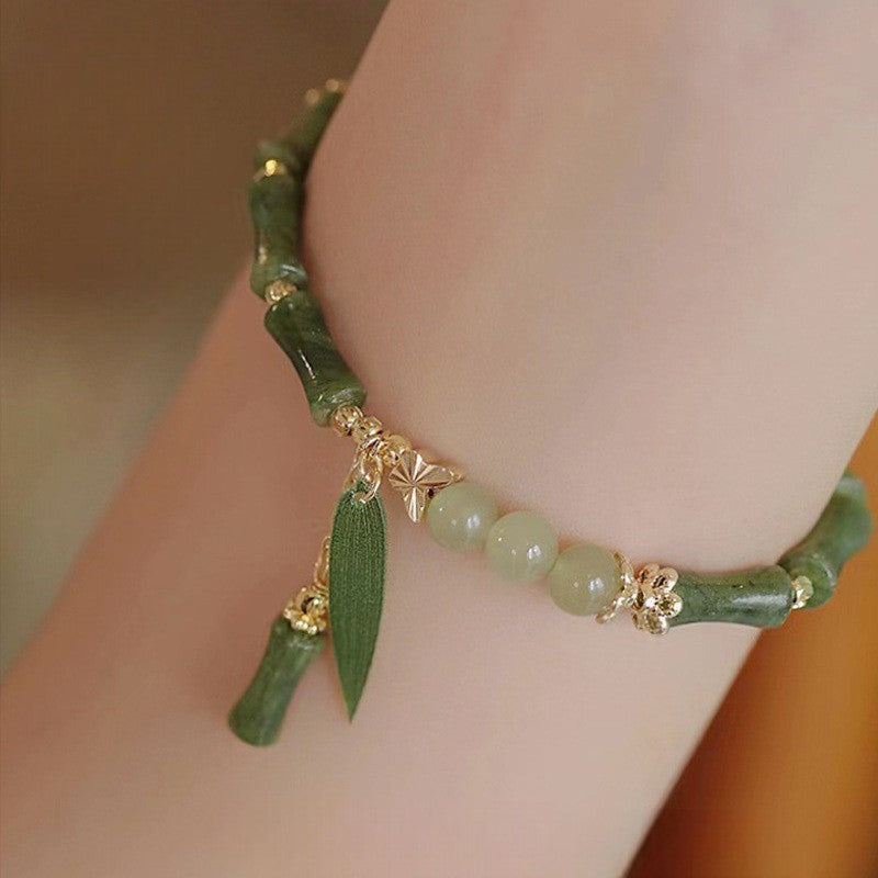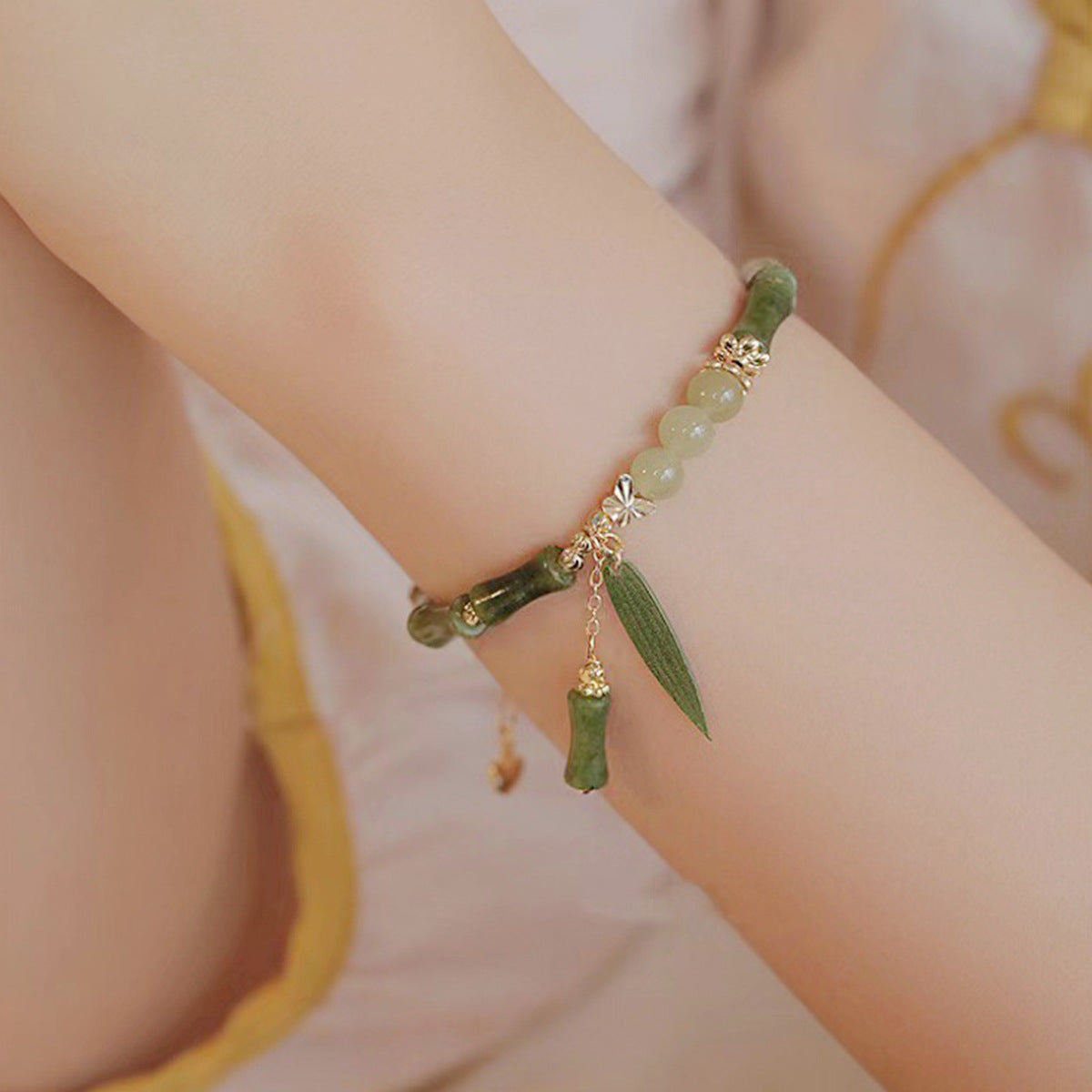 Bamboo, admired for its uprightness and perseverance, represents resilience, longevity, and continuous growth. Hetian jade, cherished for centuries as a stone of peace, harmony, and protection, nurtures emotional balance and clarity. Together, they create a meaningful accessory that radiates stability, serenity, and good fortune.