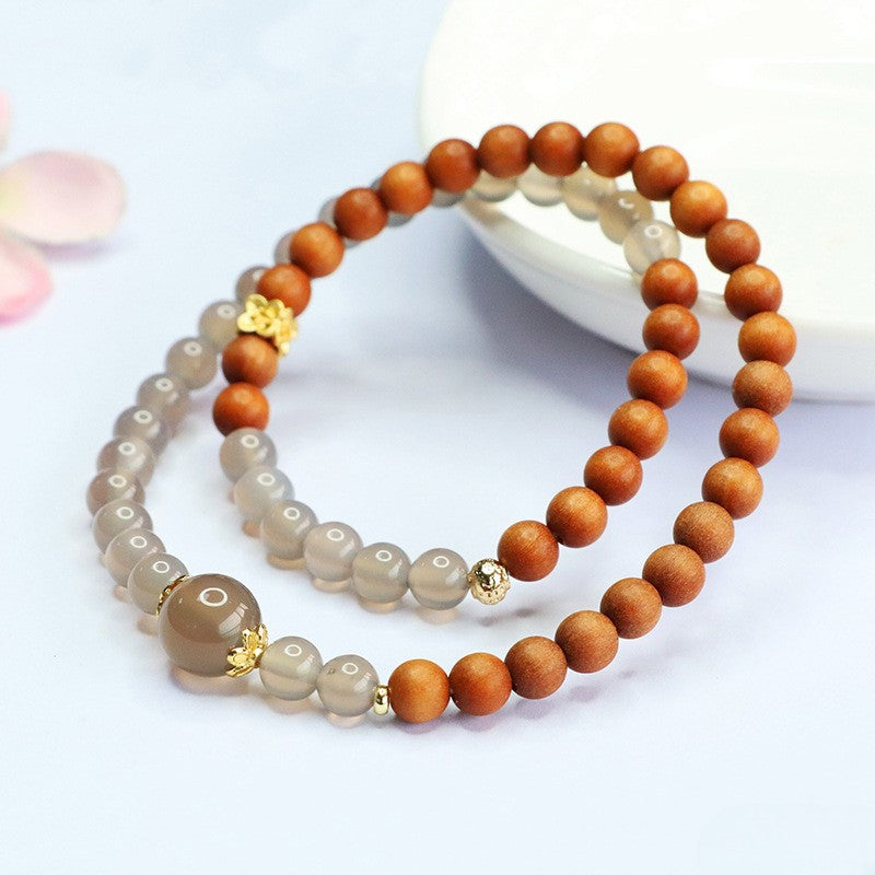 Hand-crafted with care, the Double-Wrap Gray Agate Peachwood Balance Bracelet is both elegant and symbolic—perfect for daily wear or as a thoughtful gift that carries blessings of peace, balance, and well-being.