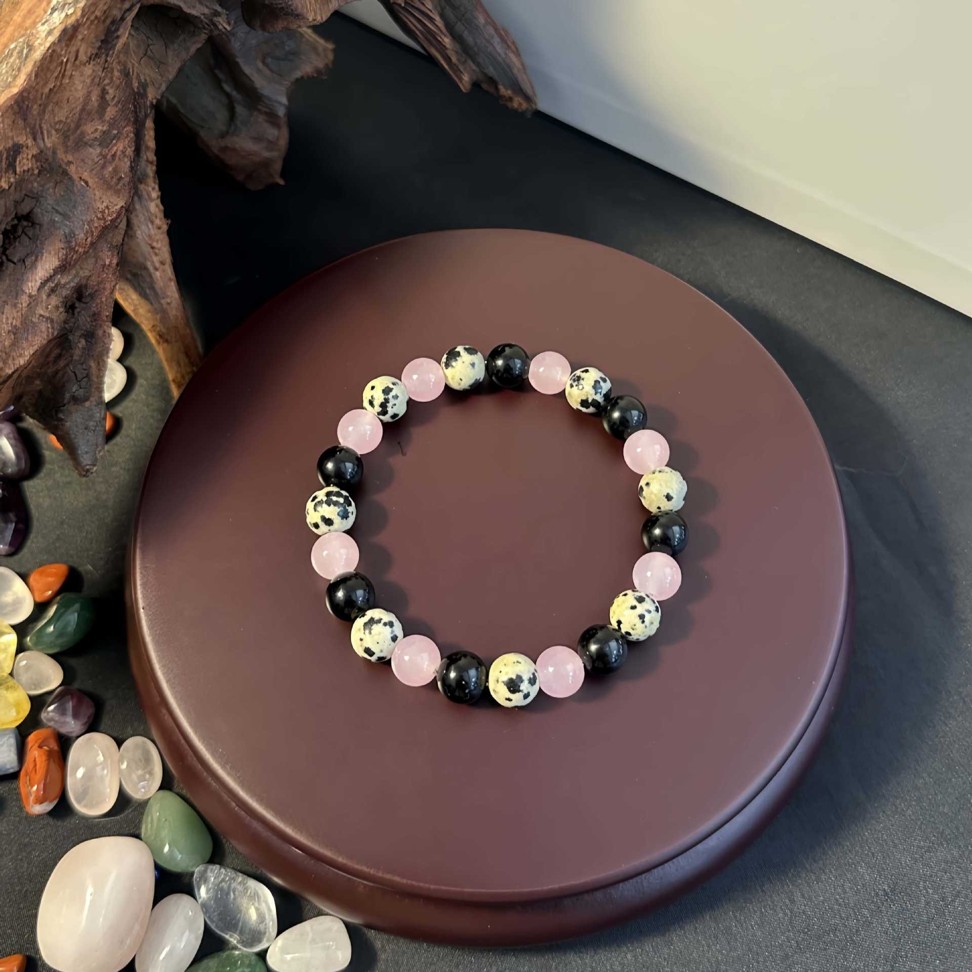 The spotted hematite stones work to stabilize emotions, increase courage, and encourage clarity in decision-making. Worn daily, this bracelet serves as both a protective charm and a meaningful accessory that brings calm, balance, and positive energy to your life.