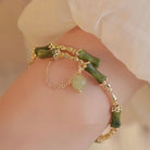 Invite harmony, growth, and steady energy into your everyday life with the Hetian Jade Bamboo Beaded Charm Pendant Balance Bangle. This meaningful bangle features smooth Hetian jade beads paired with a delicately crafted bamboo charm, forming a symbol of resilience, balance, and continuous growth.
