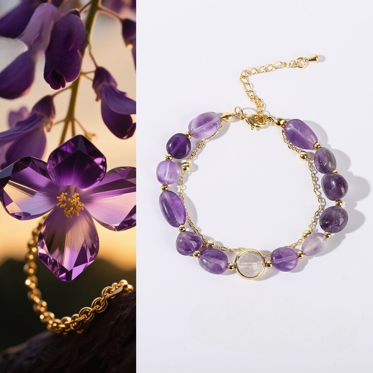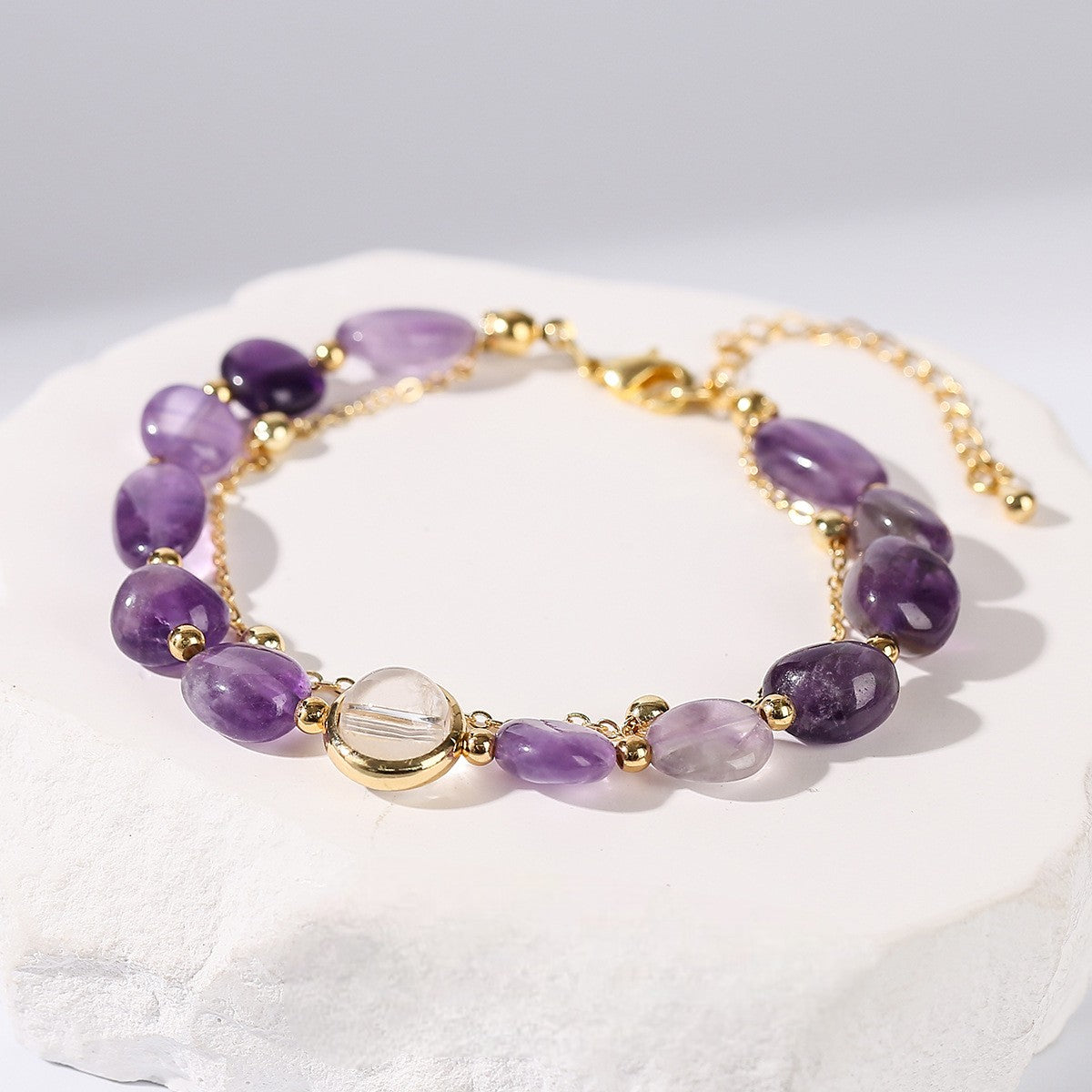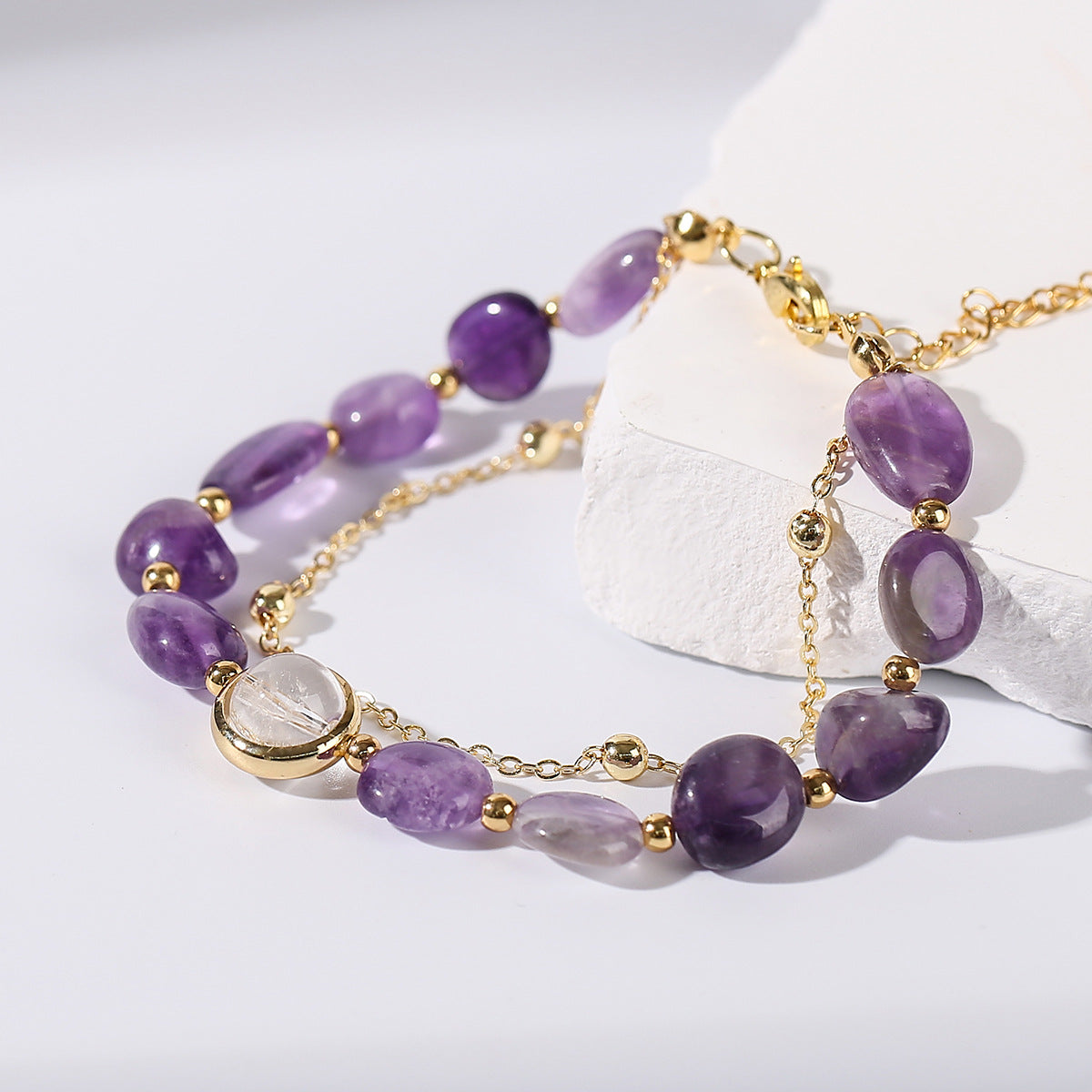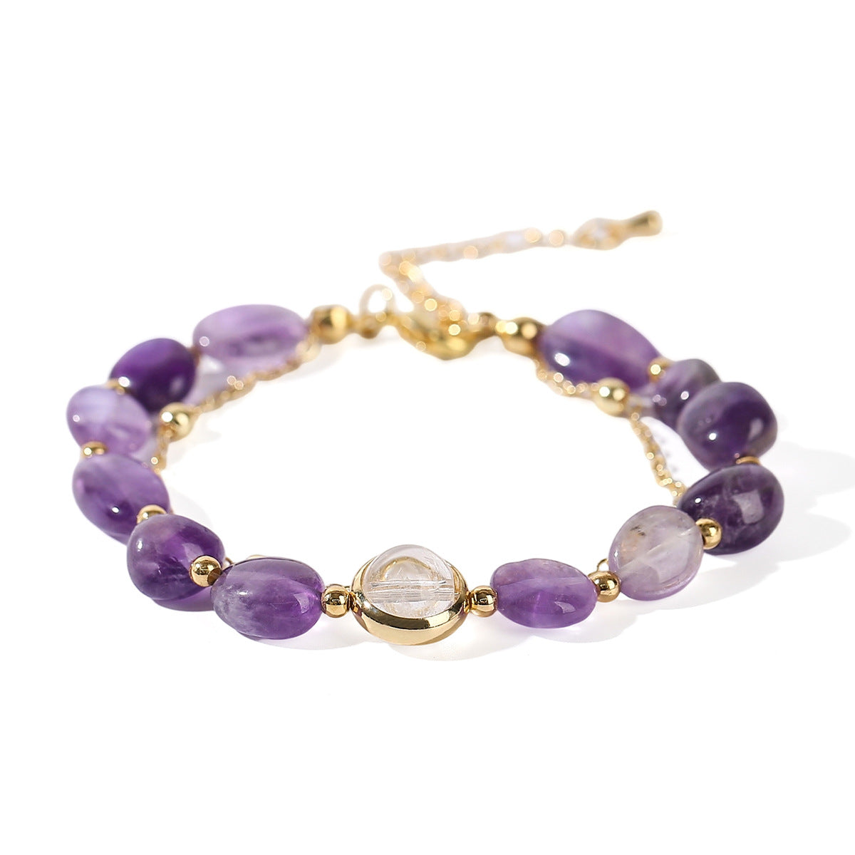 Each bead carries powerful symbolism: amethyst is known for its ability to soothe stress, encourage emotional balance, and inspire spiritual insight. The oval shape of the beads enhances the flow of energy, creating a harmonious and balanced accessory that nurtures well-being and inner peace.