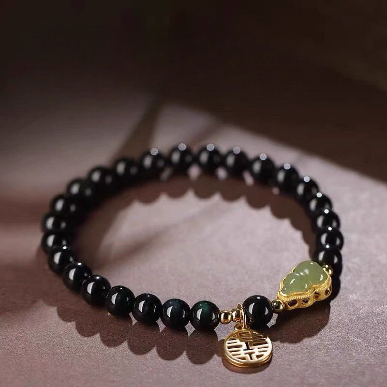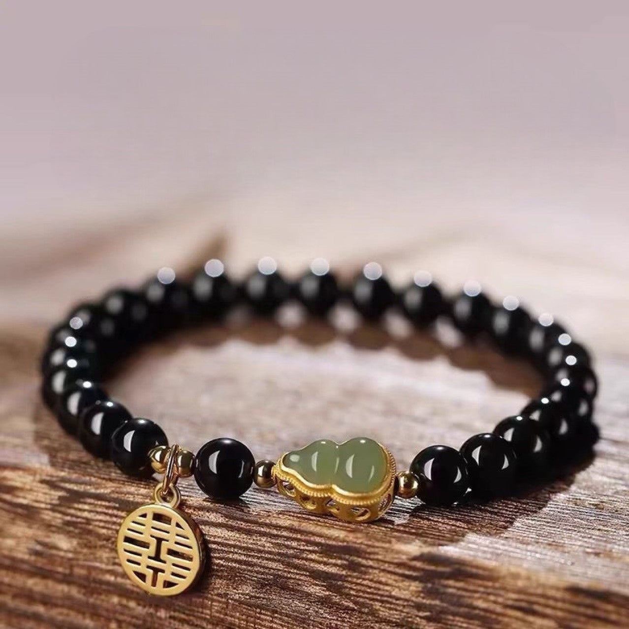 Don’t leave wealth to chance — invite abundance into your life with the Black Obsidian Jade Gourd Wealth Bracelet.