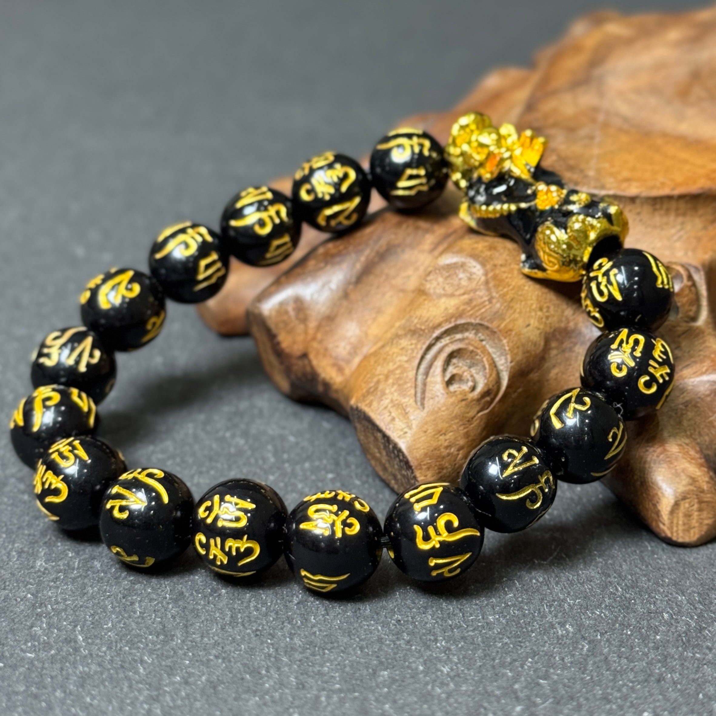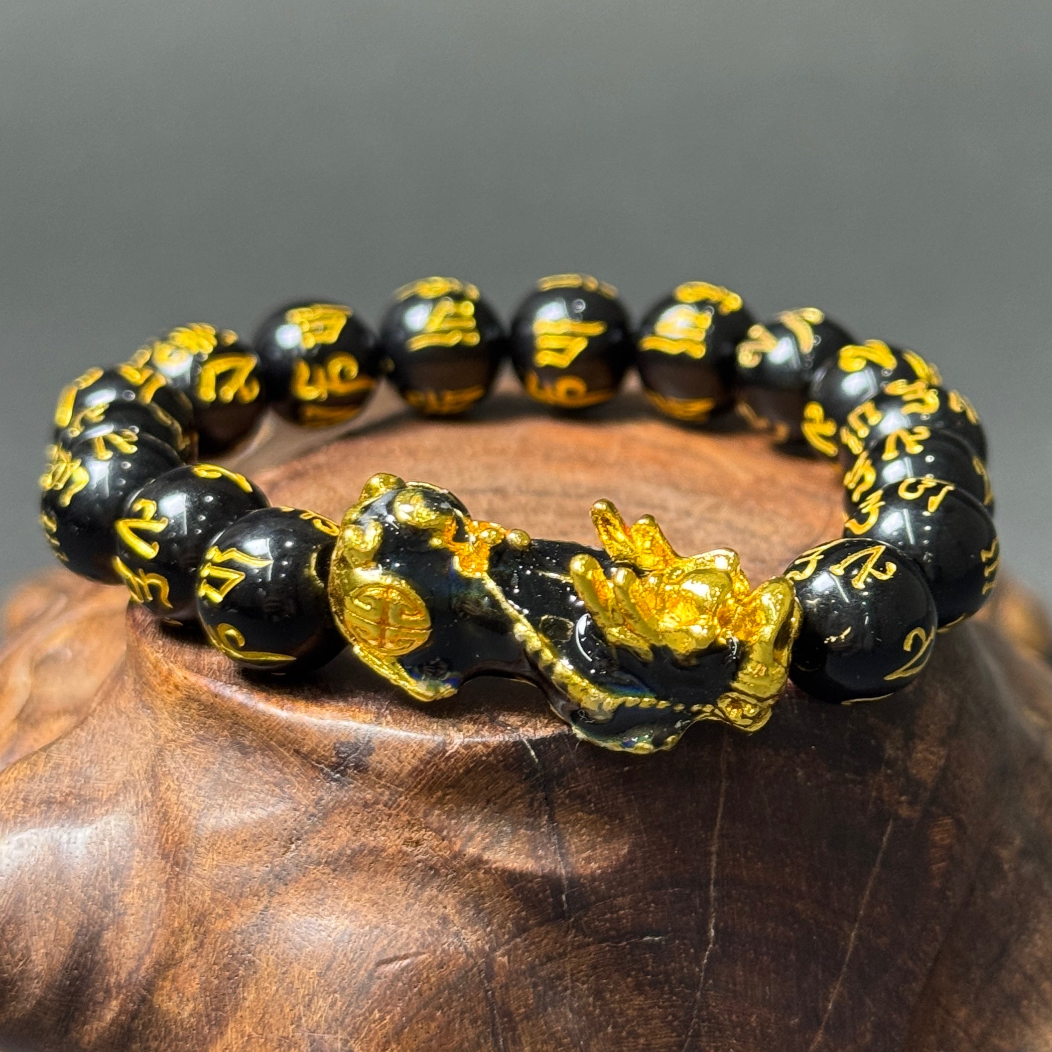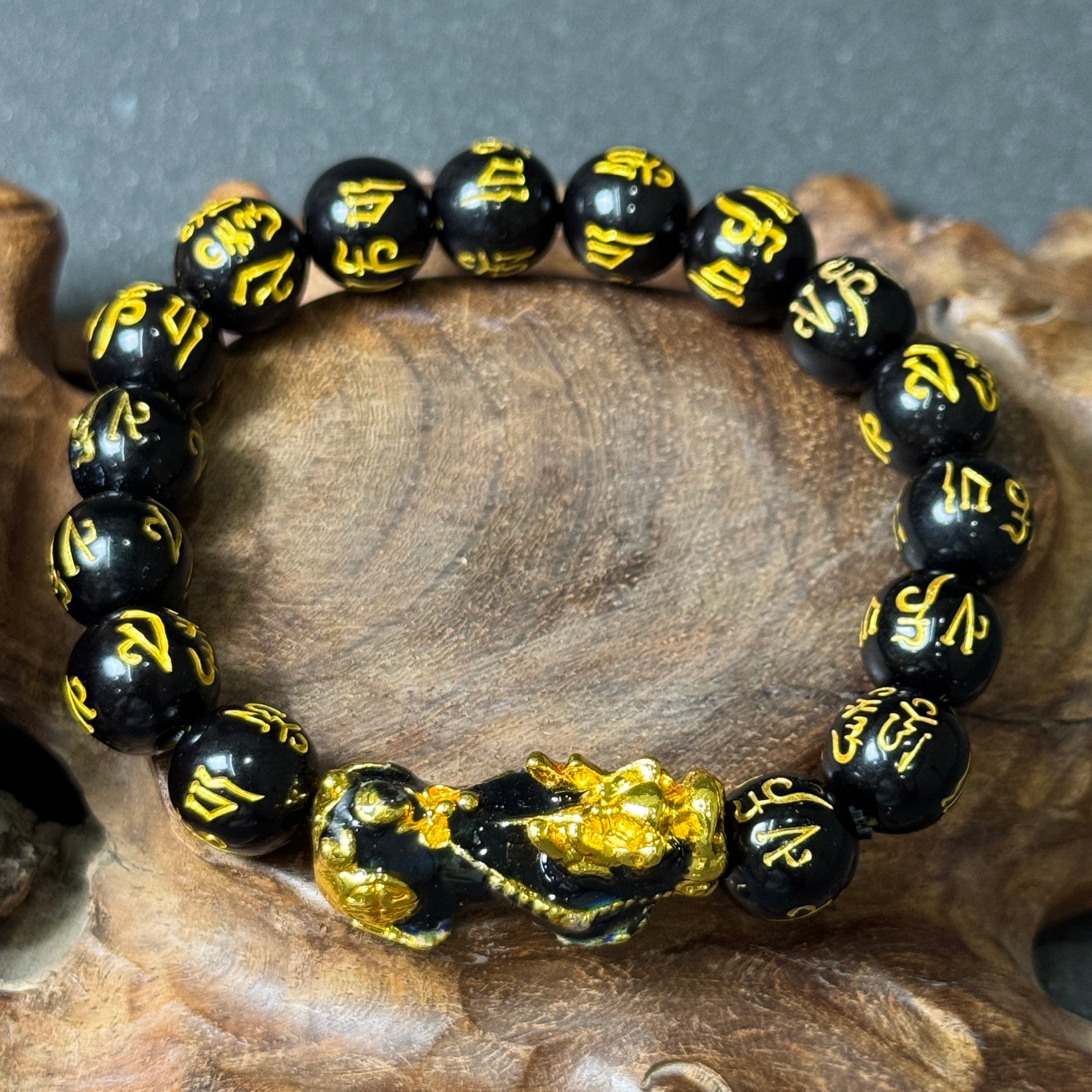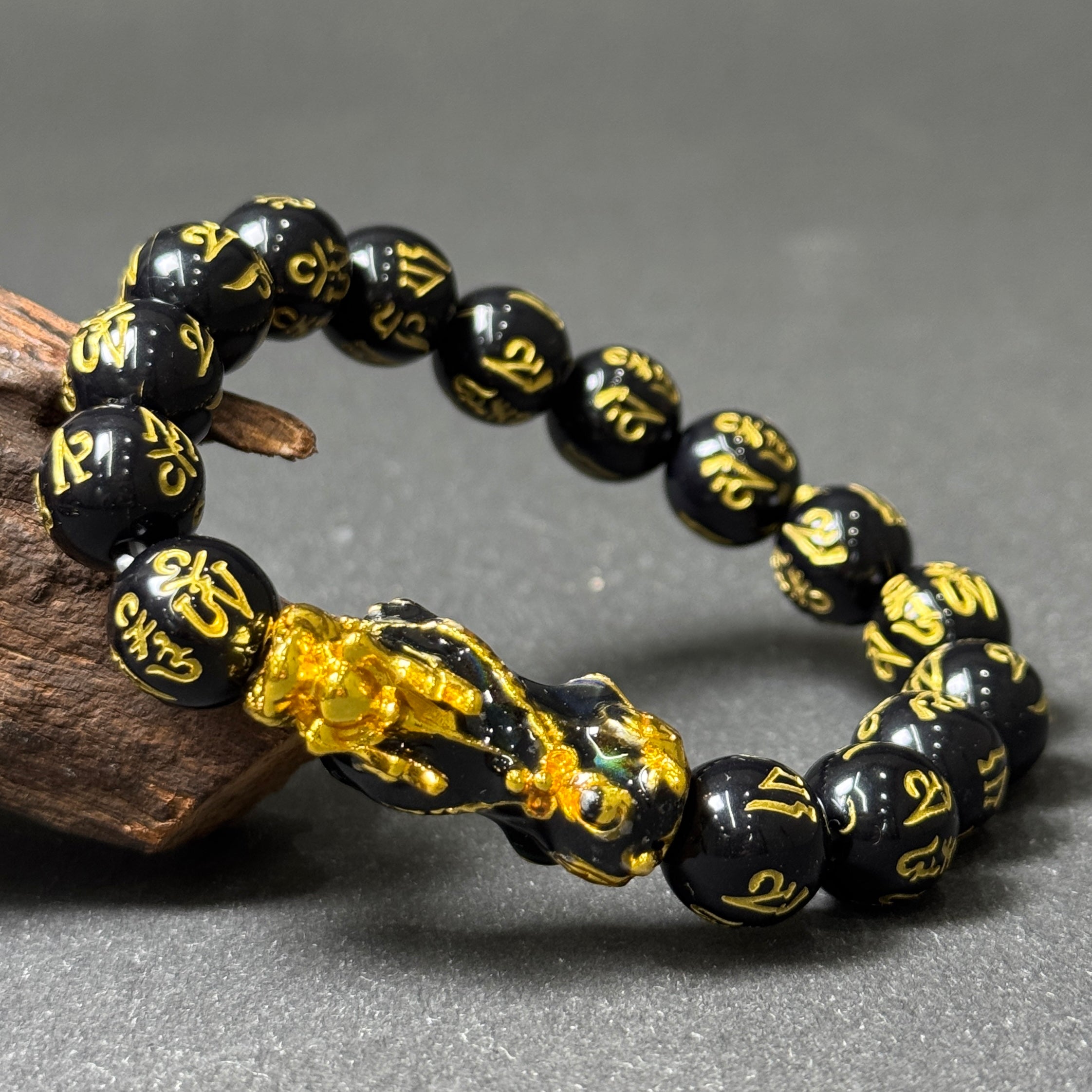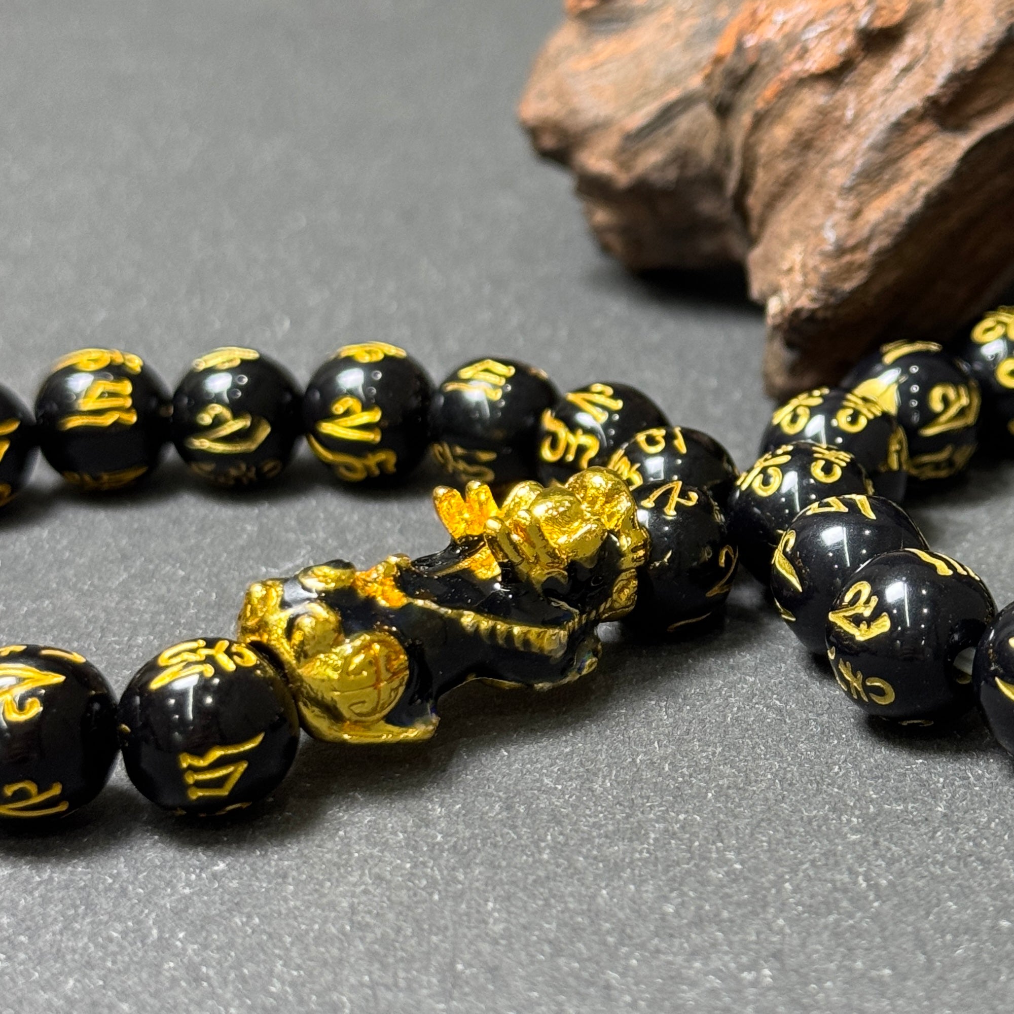 - Material: Obsidian, Golden-Tone Pixiu Charm (temperature-sensitive), Engraved Mantra Beads