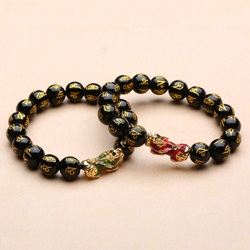 Thermochromic Pixiu Obsidian Mantra Wealth Bracelet