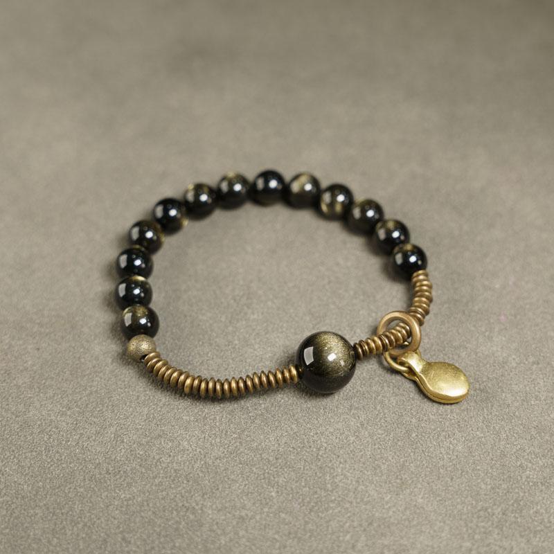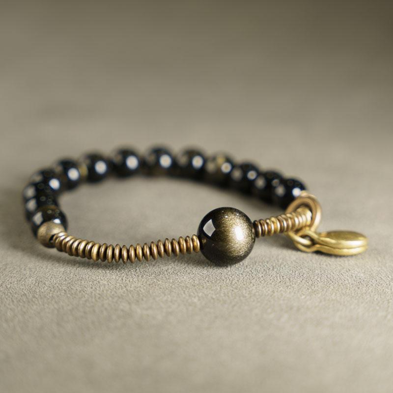 Each element carries intention: obsidian grounds the spirit and strengthens inner power, while the vintage brass design adds harmony and stability. Together, they create a meaningful accessory that not only enhances your look but also serves as a personal talisman for protection and strength.
