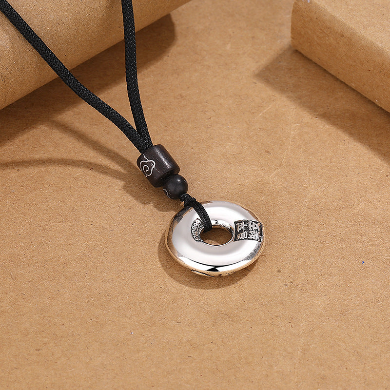 Silver Peace Buckle Engraved Pixiu Protection Necklace