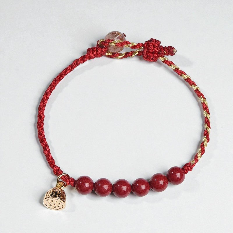 Cinnabar Bead Lotus Pendant Red String Luck Bracelet
