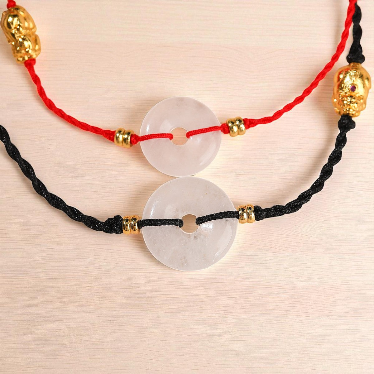 Wear the Couple White Crystal Peace Buckle Red Rope Protection Bracelet as a daily reminder of love, balance, and protection.