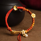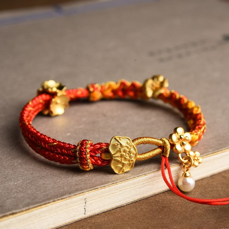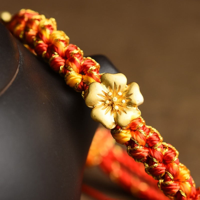Peach Blossom Knot Gold-Plated Flower Red String Luck Bracelet