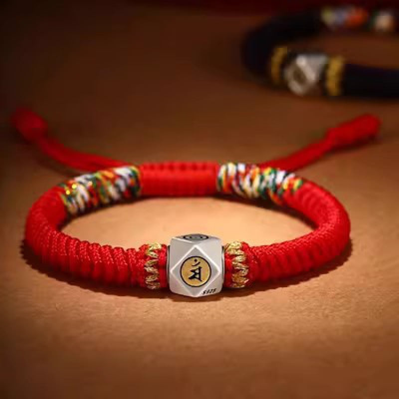 Tibetan Red String Silver Mantra Bead Protection Bracelet