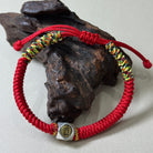 Tibetan Red String Protection Silver Mantra Bead Bracelet
