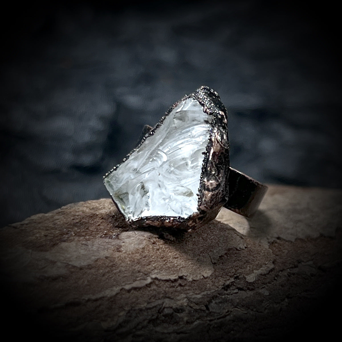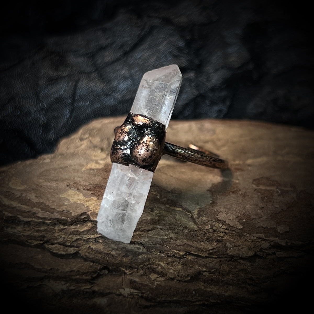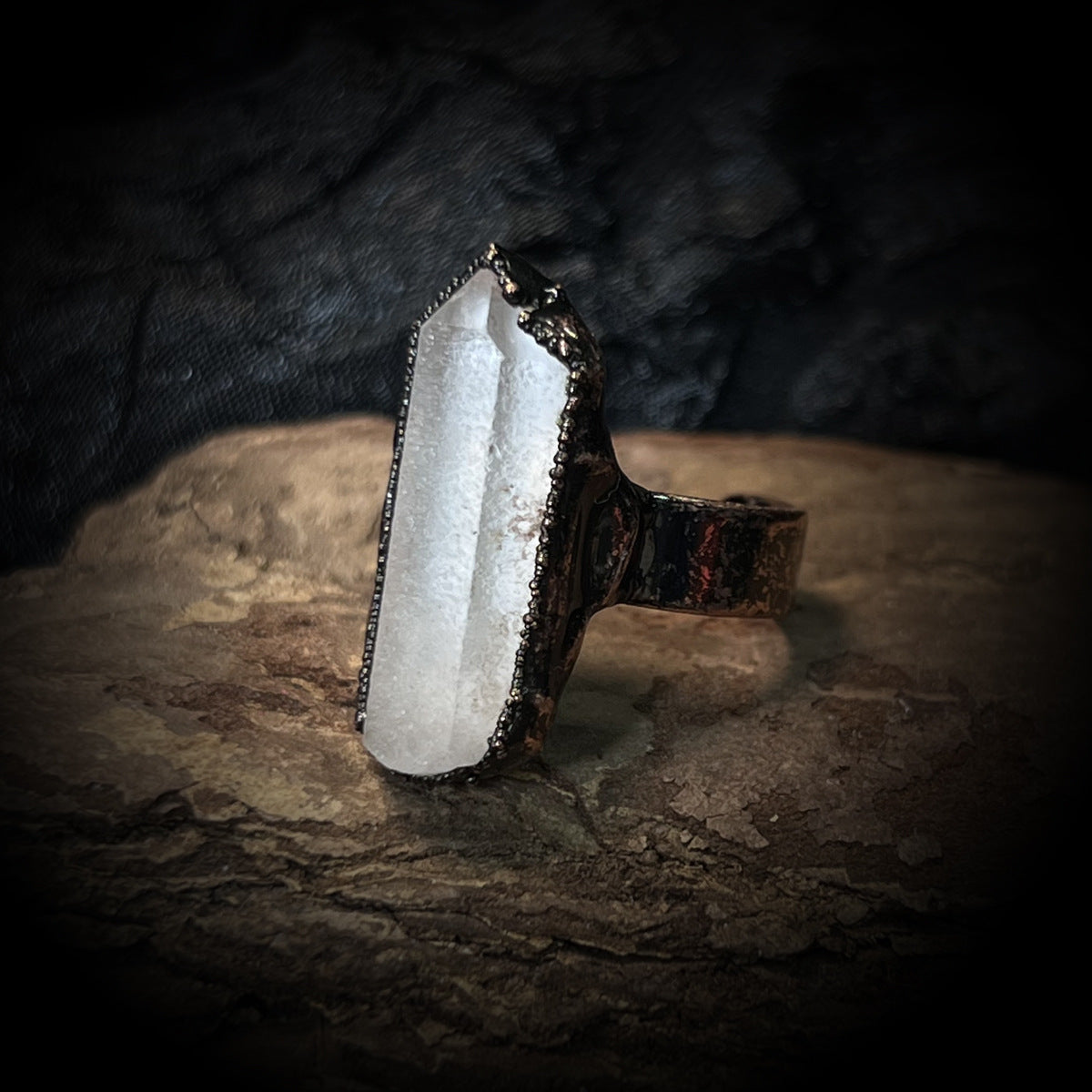 Handcrafted to showcase the raw beauty of natural clear quartz, this adjustable ring is more than just jewelry—it’s a statement of clarity, energy, and inner strength.