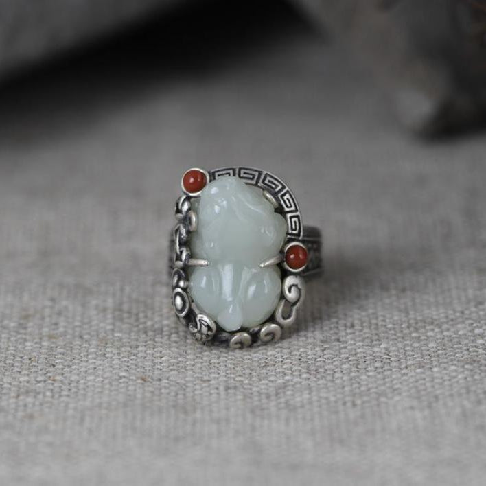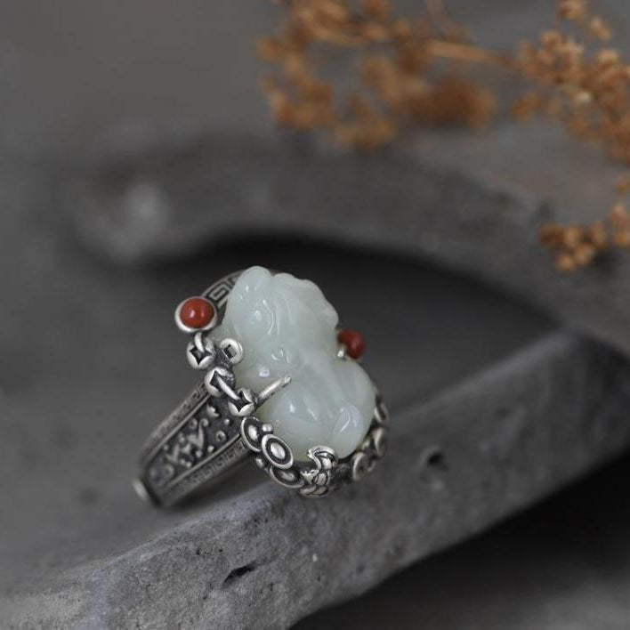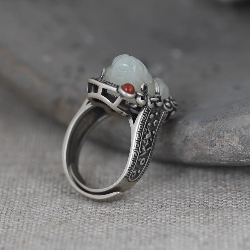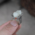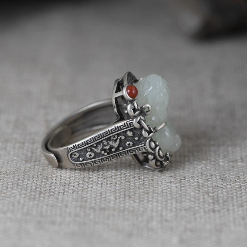 Hetian Jade Pixiu Silver-Plated Open Ring Highlights
