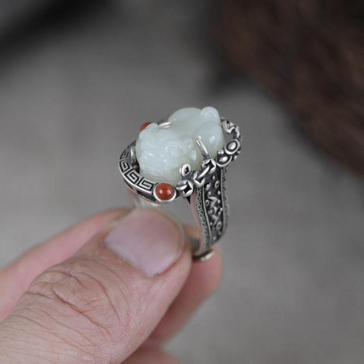 Hetian Jade Pixiu Silver-Plated Open Ring