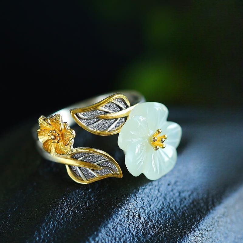 Hetian Jade White Plum Blossom Open Love Ring Highlights