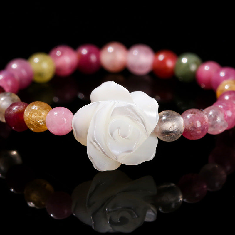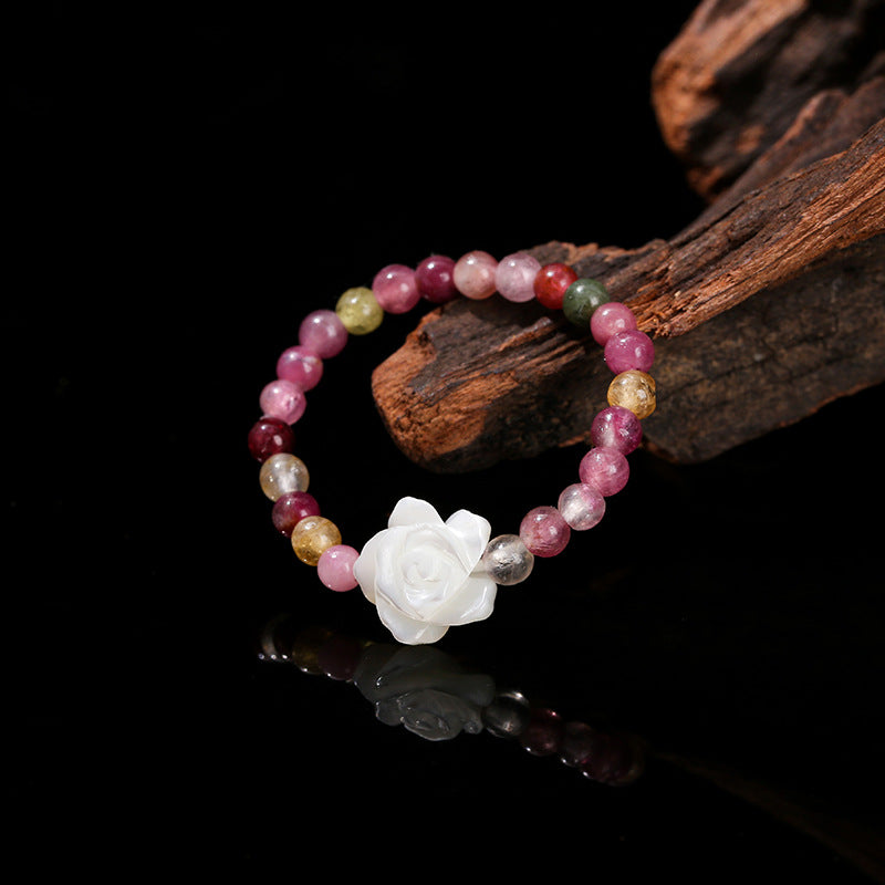 Handcrafted with care, the Multicolor Tourmaline Shell Rose Lucky Ring is designed to be both stylish and meaningful, making it a perfect gift or a personal charm for inviting abundance and happiness.