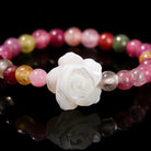 Tourmaline is celebrated for its protective and energizing properties, helping to balance emotions, attract good fortune, and promote positive energy. The rose motif represents love, growth, and new beginnings, while the multicolor stones amplify joy, vitality, and harmony. Together, they form a beautiful talisman of luck, emotional balance, and radiant energy.